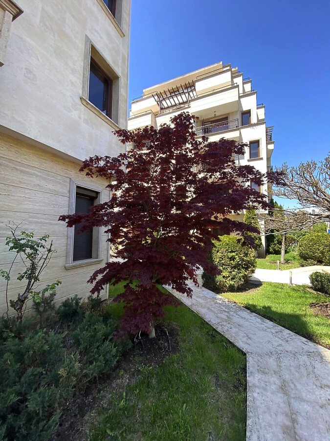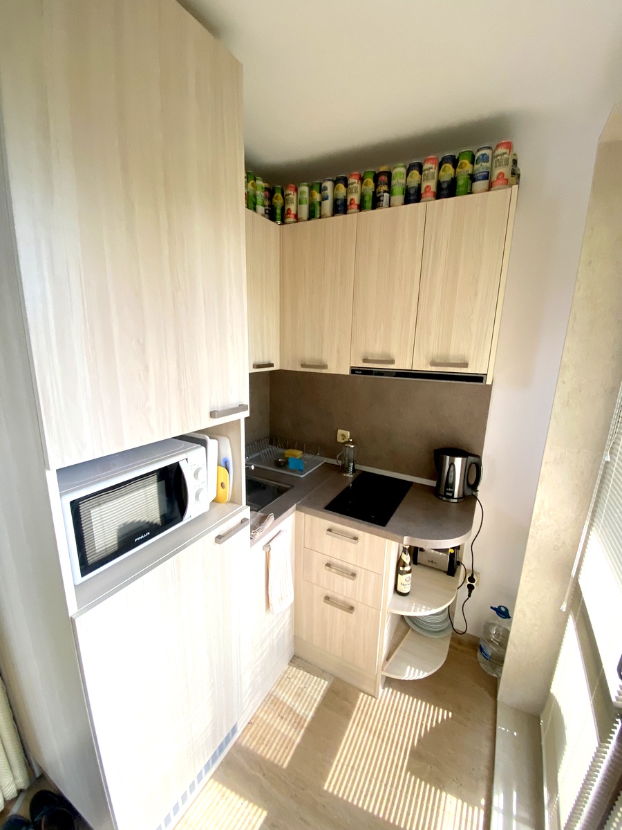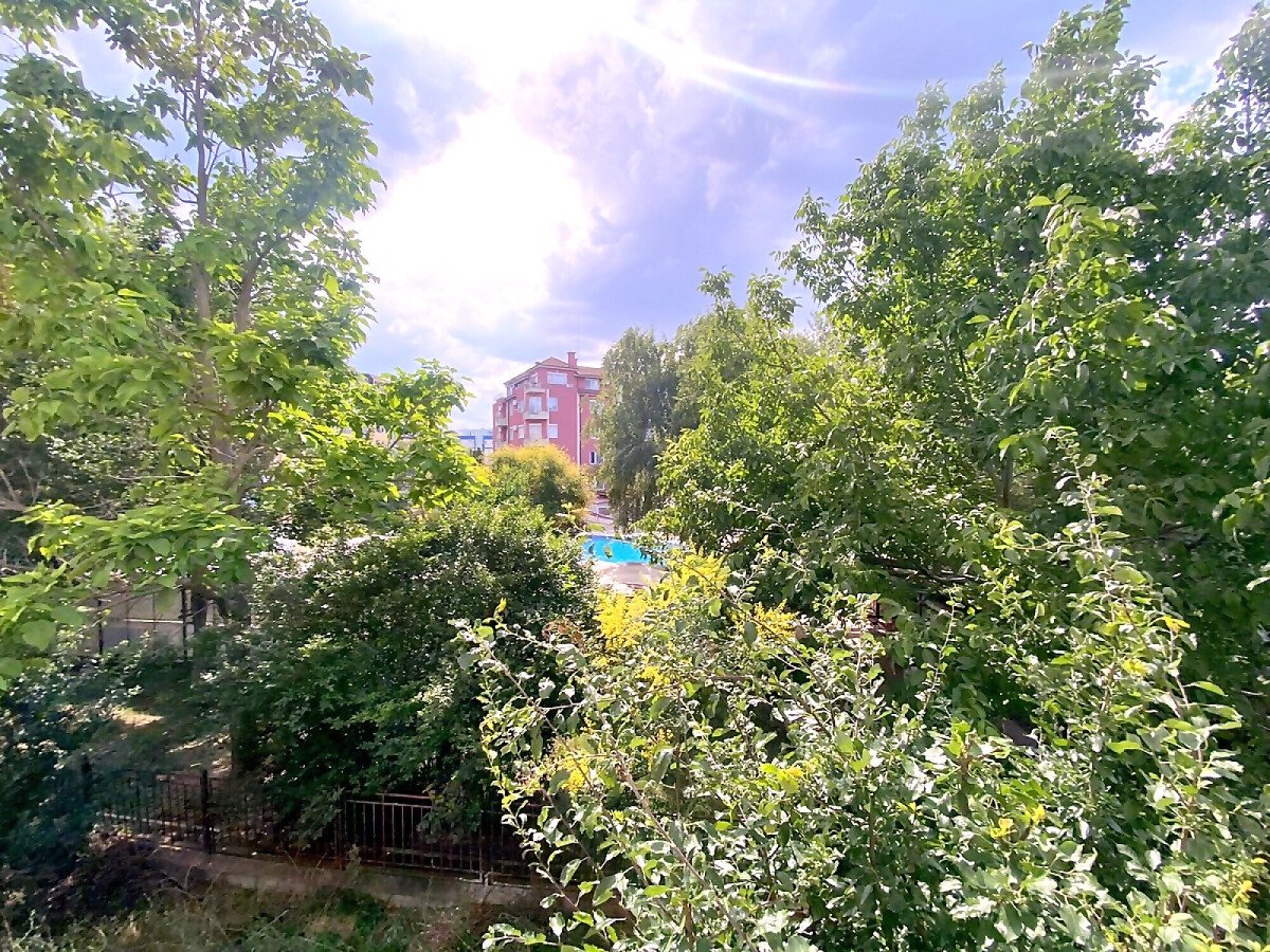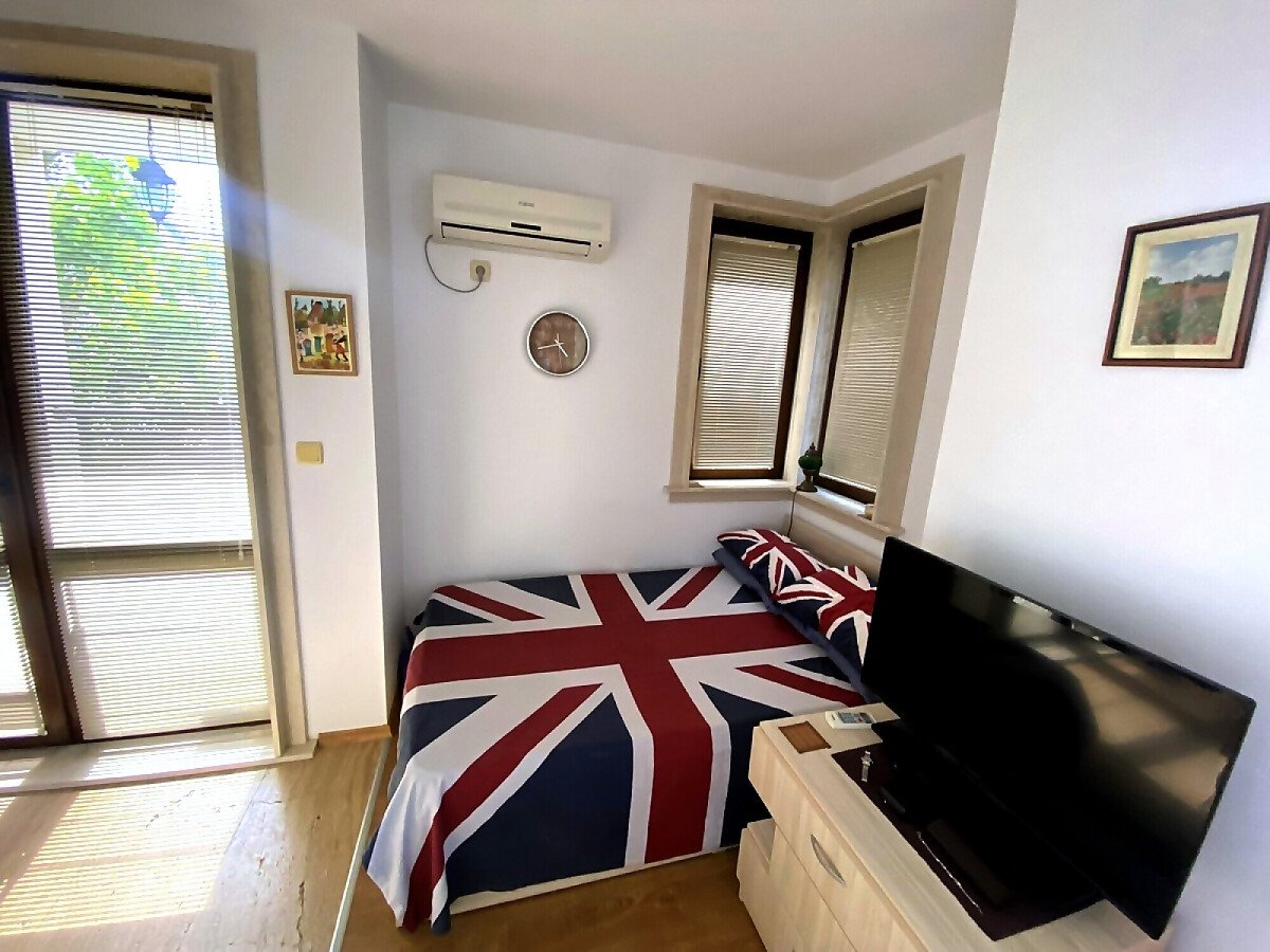 Студиото се продава в много добро състояние, с необходимите мебели и домакинска електротехника, със следното разпределение – входно антре, всекидневна с обособена спалня и кухненски бокс, баня с тоалетна, тераса с красив изглед към озеленения двор на комплекса и към басейна.