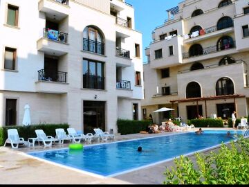 Комплексът притежава красиви озеленени площи и разполага с басейн, мини - маркет, безплатен безжичен интернет, паркинг и охрана.
