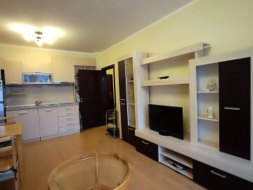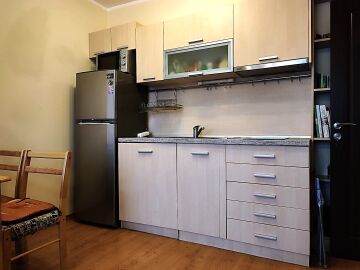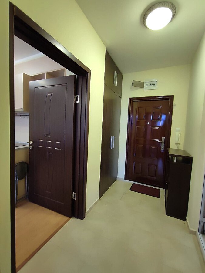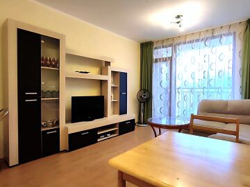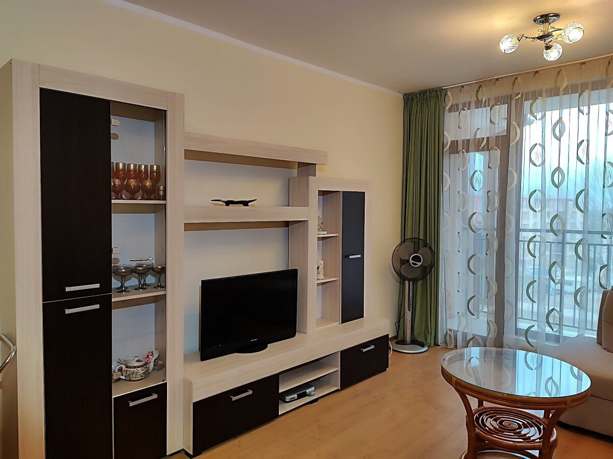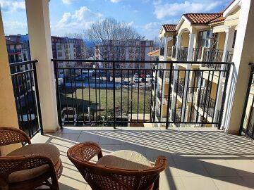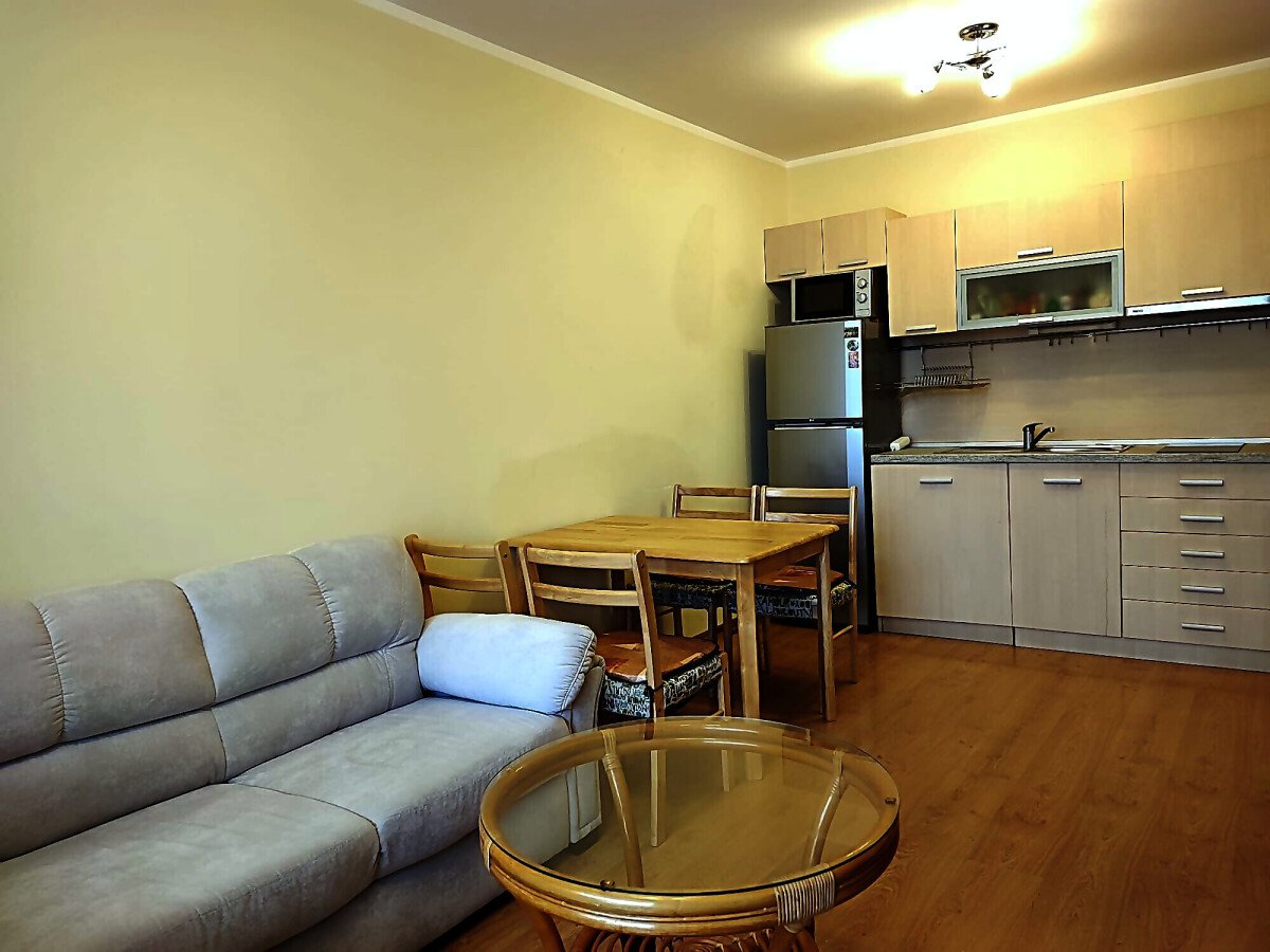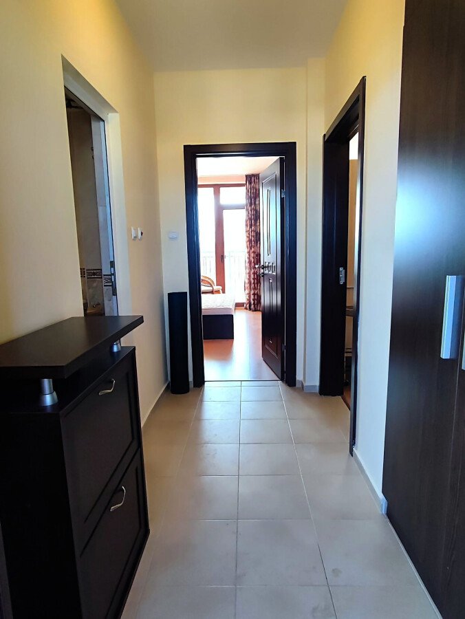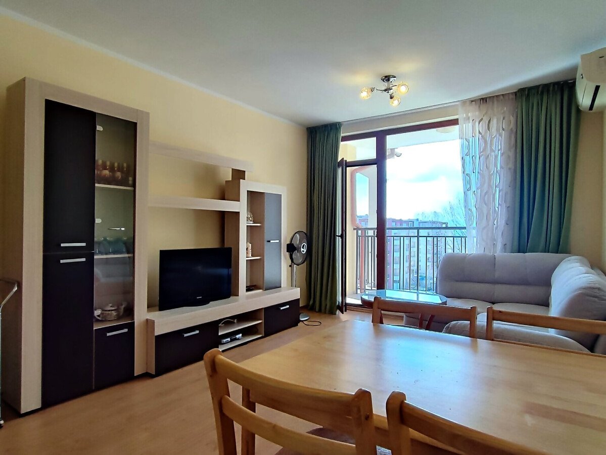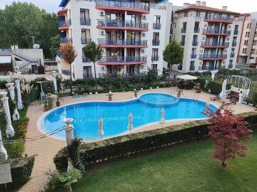 Имотът се продава след ремонт, напълно обзаведен и оборудван, със следното разпределение – входно антре, уютна всекидневна с кът за хранене и кухненски бокс, спалня, баня с тоалетна и душ кабина, просторна тераса с гледка към озеленения двор и басейна на комплекса.