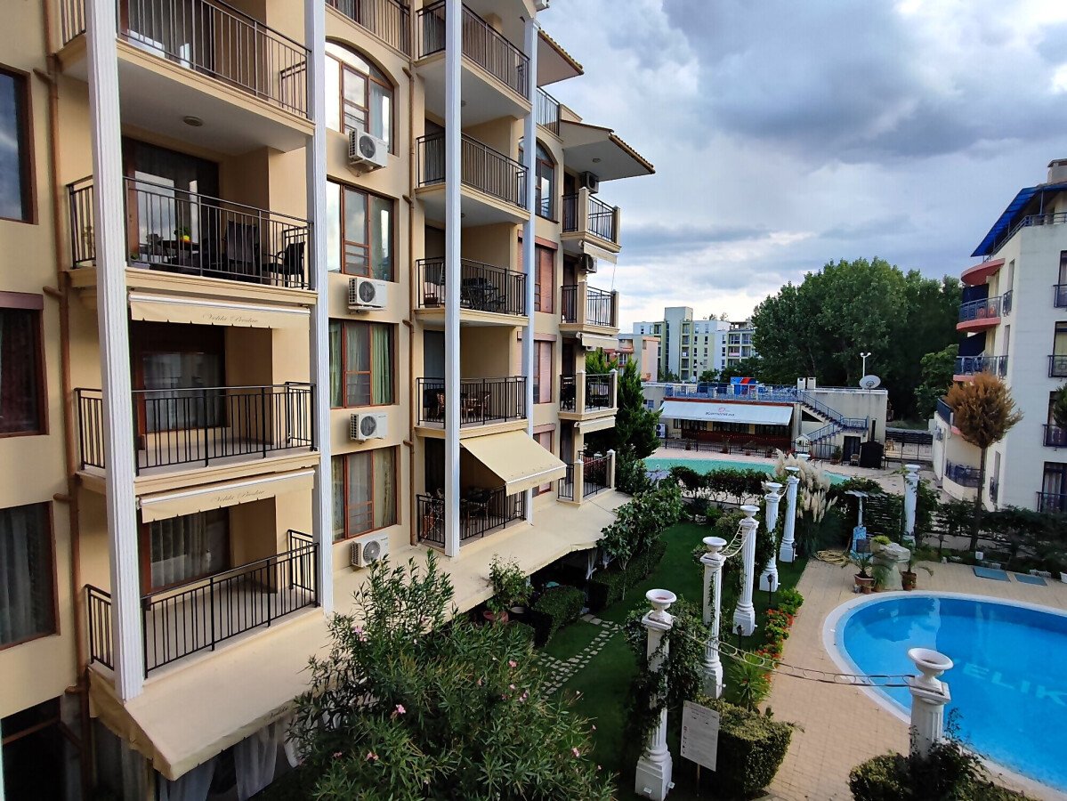Предлагаме за продажба чудесен двустаен апартамент с гледка към басейна в комплекс „Велики Преслав“, разположен в централната част на морския курорт Слънчев бряг, на 500 метра от плажната ивица и в близост до необходимата инфраструктура. На пешеходно разстояние има голям супермаркет, удобни автобусни спирки, разнообразие от магазини и ресторанти, летни атракции.
