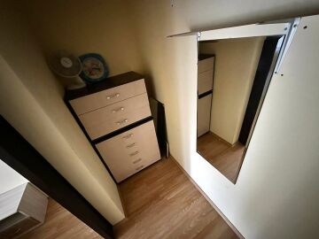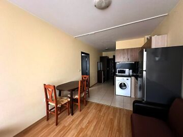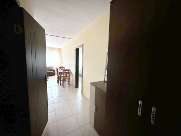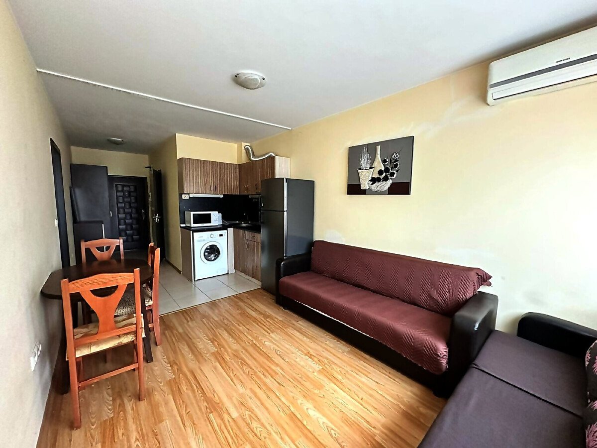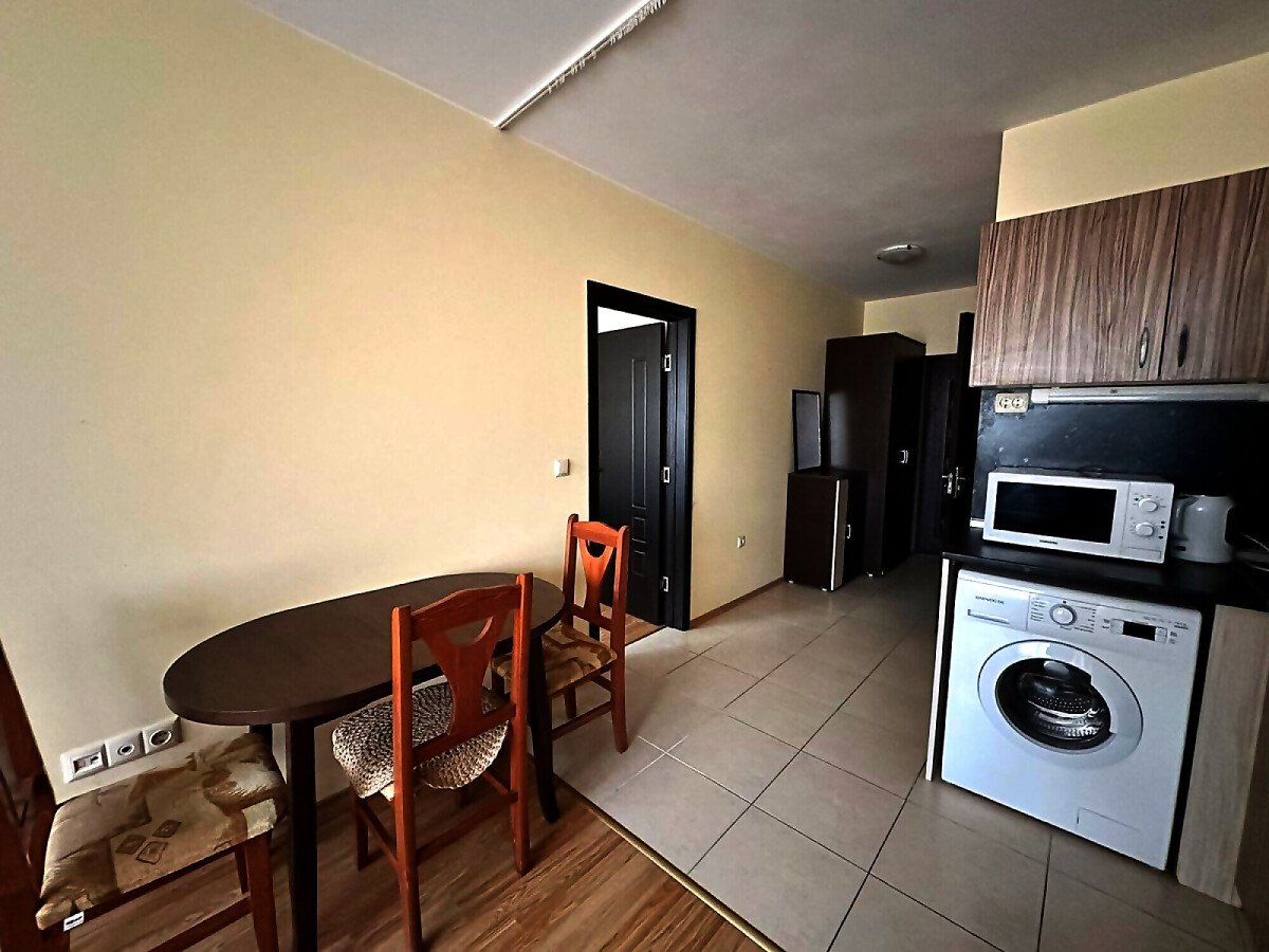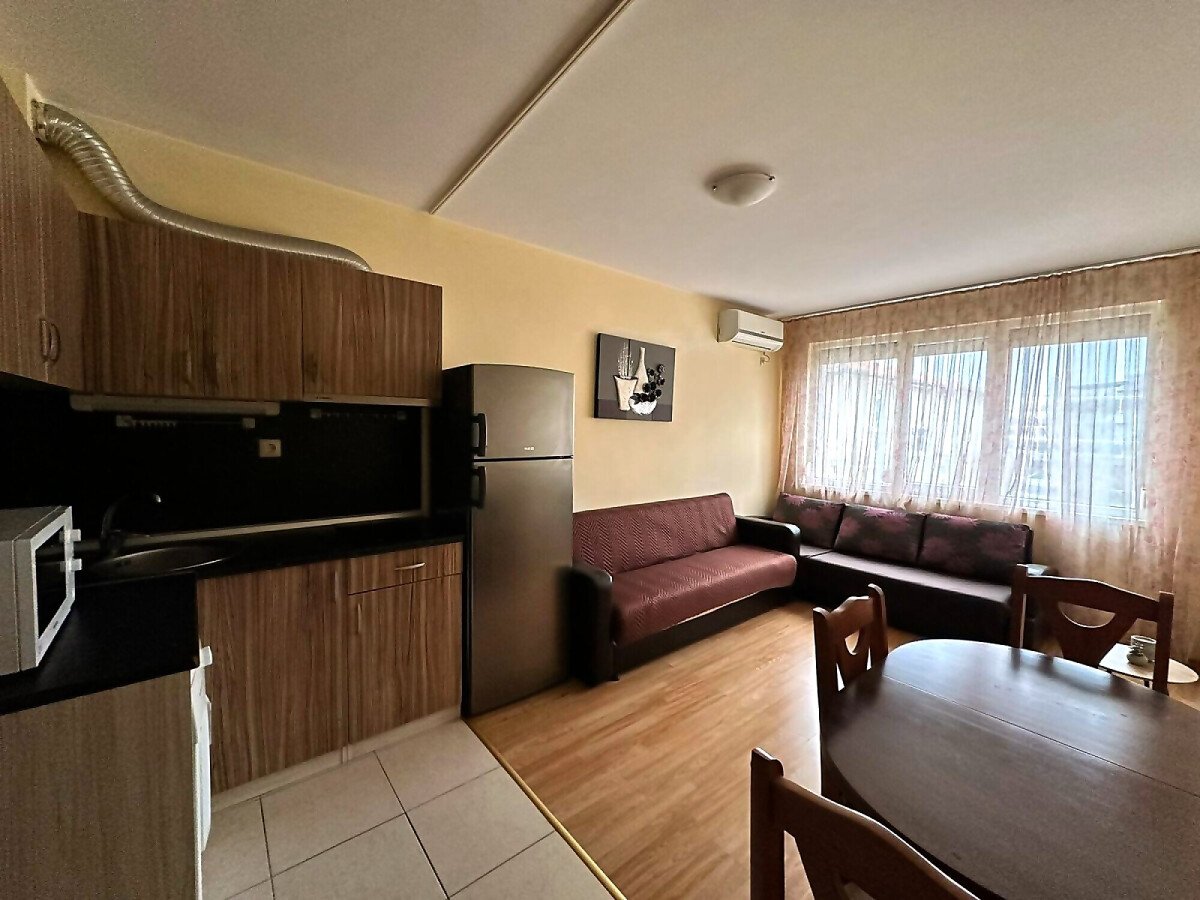 Апартаментът е светъл и много функционален, обзаведен и напълно оборудван, със следното разпределение – входно антре, всекидневна с кът за хранене и обособен малък кухненски бокс, спалня с дрешник към нея, баня с тоалетна и душ кабина, балкон.
