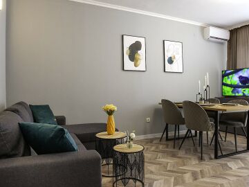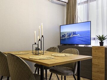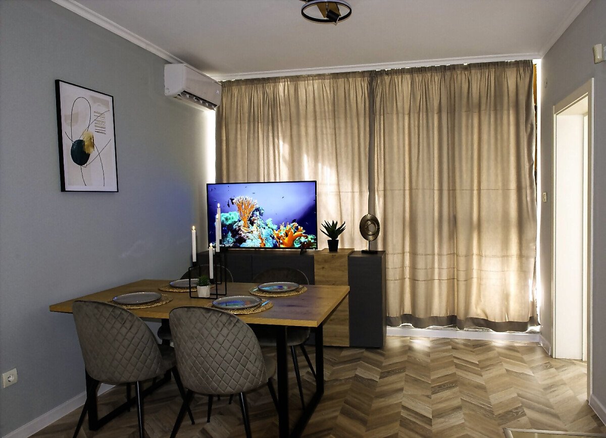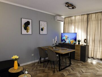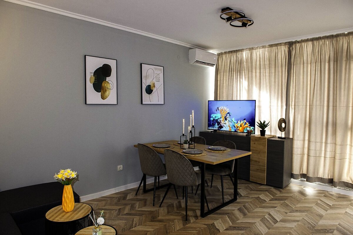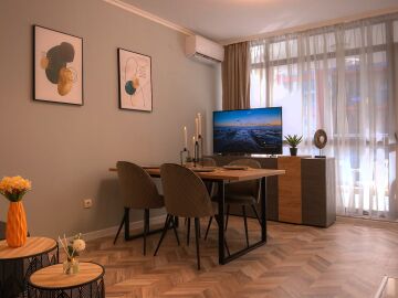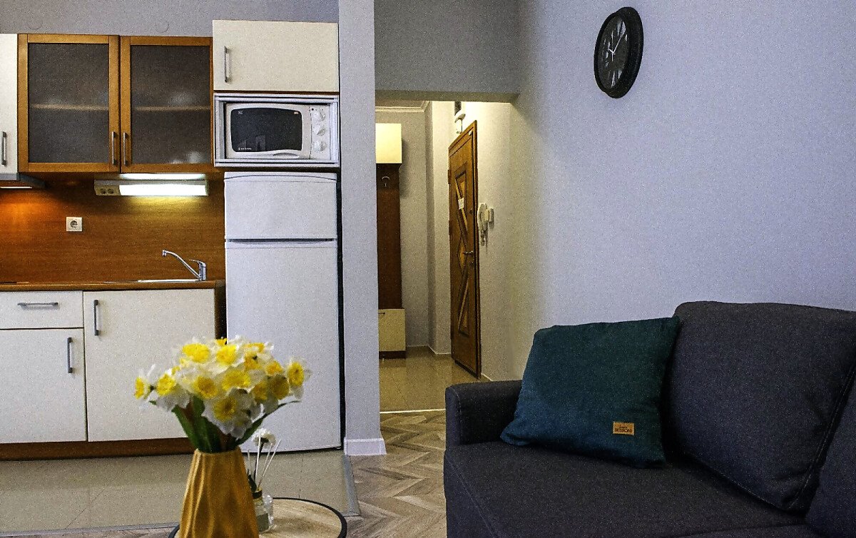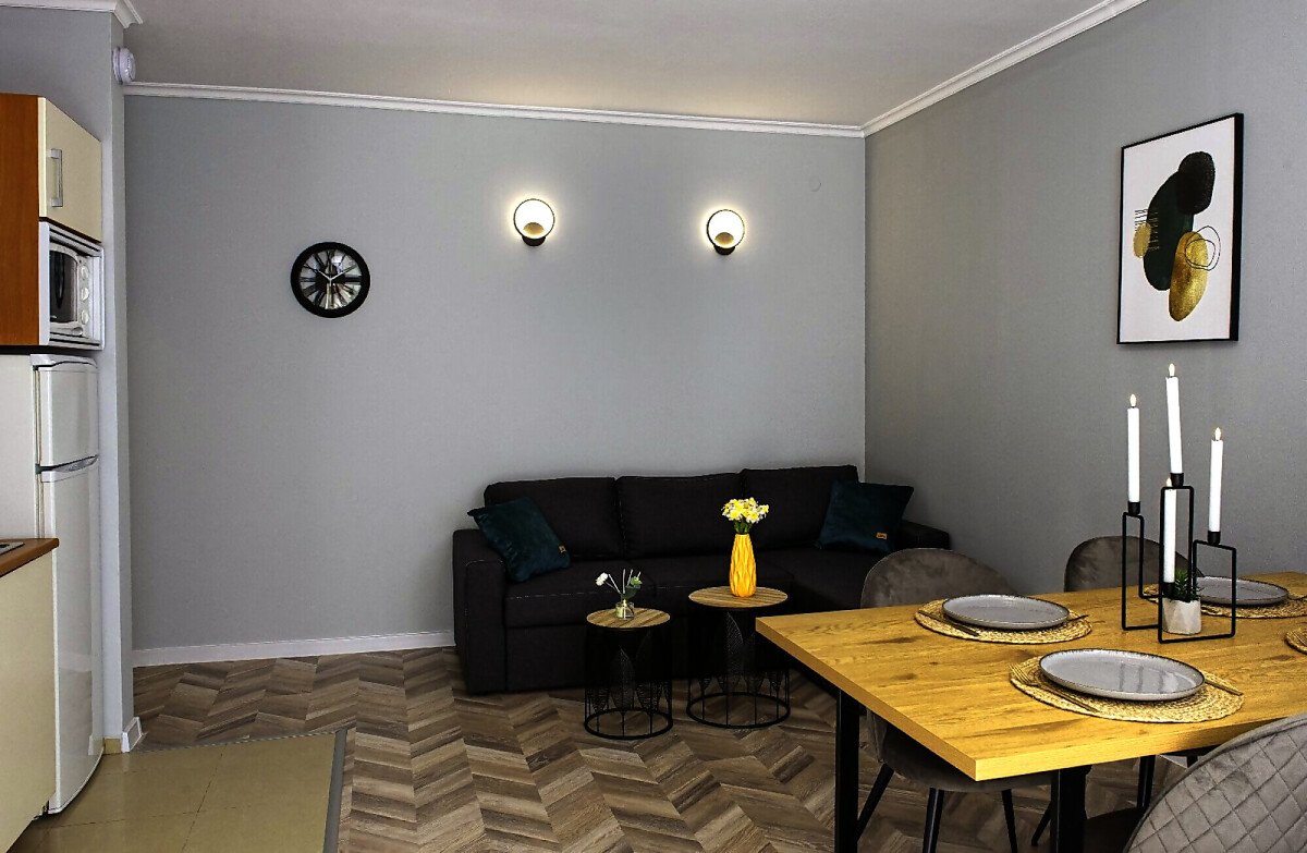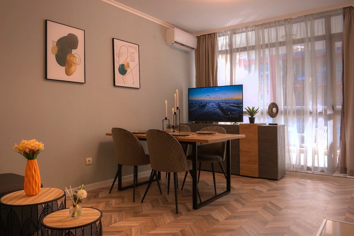 Апартаментът се продава със стилно обзавеждане и качествено оборудване, в отлично състояние, със следното разпределение – входно антре, уютна всекидневна с кухненски бокс и кът за хранене, светла спалня, баня с тоалетна и вана, балкон.