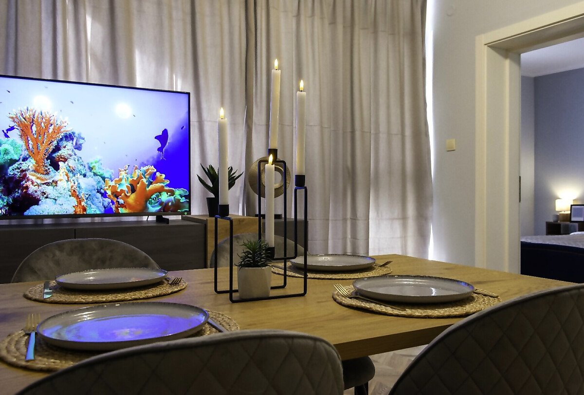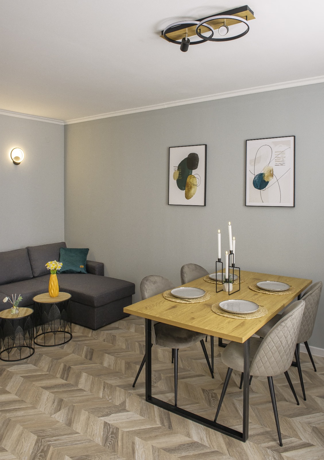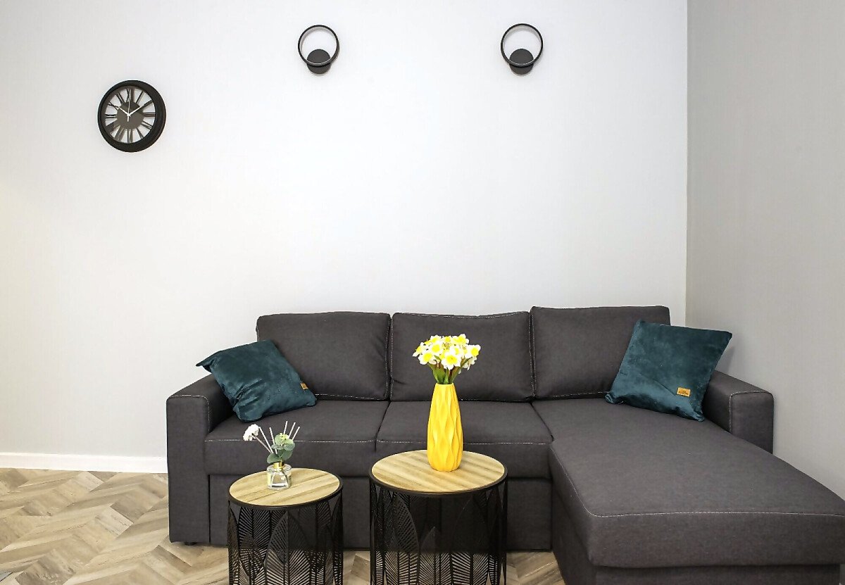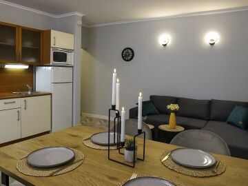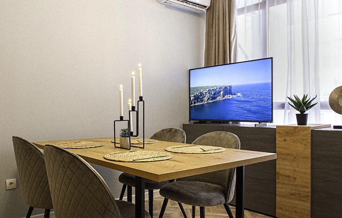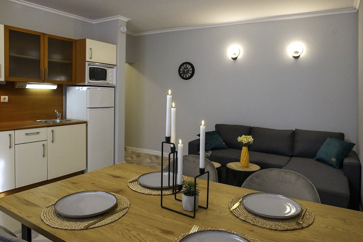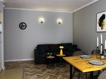 Апартаментът се продава със стилно обзавеждане и качествено оборудване, в отлично състояние, със следното разпределение – входно антре, уютна всекидневна с кухненски бокс и кът за хранене, светла спалня, баня с тоалетна и вана, балкон.