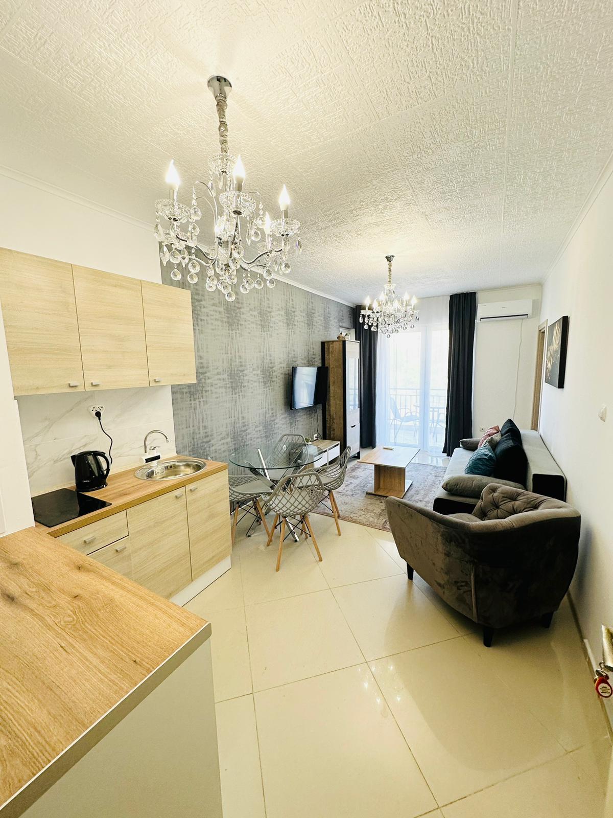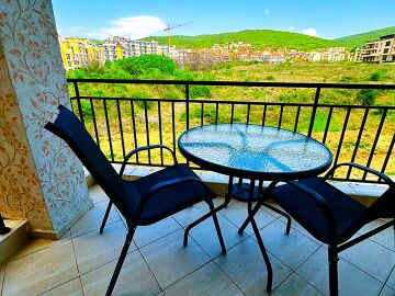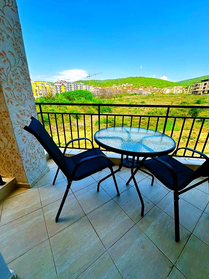 Предлагаме за продажба стилно обзаведен двустаен апартамент с гледка към планината в комплекс „Домус“, разположен в елитното курортно градче Свети Влас, в спокоен район, но същевременно с развита инфраструктура, само на 250 метра от плажната ивица с фин златист пясък.