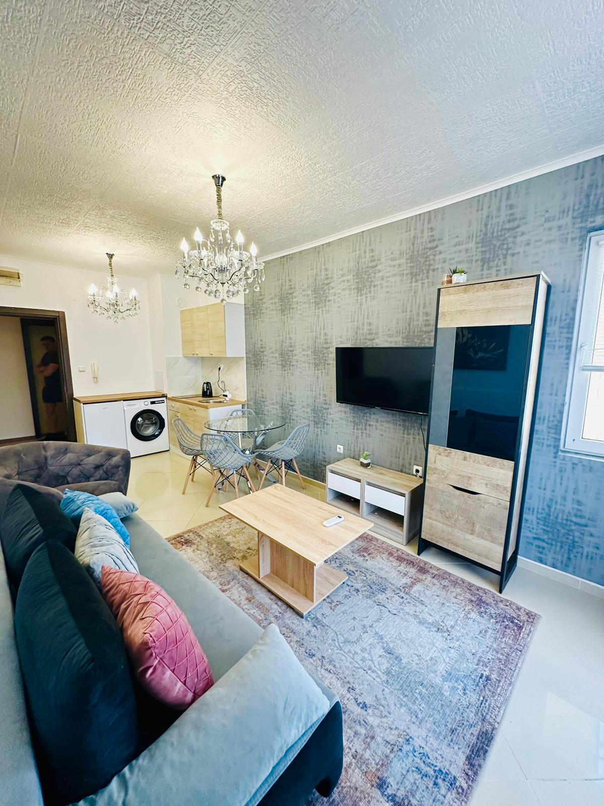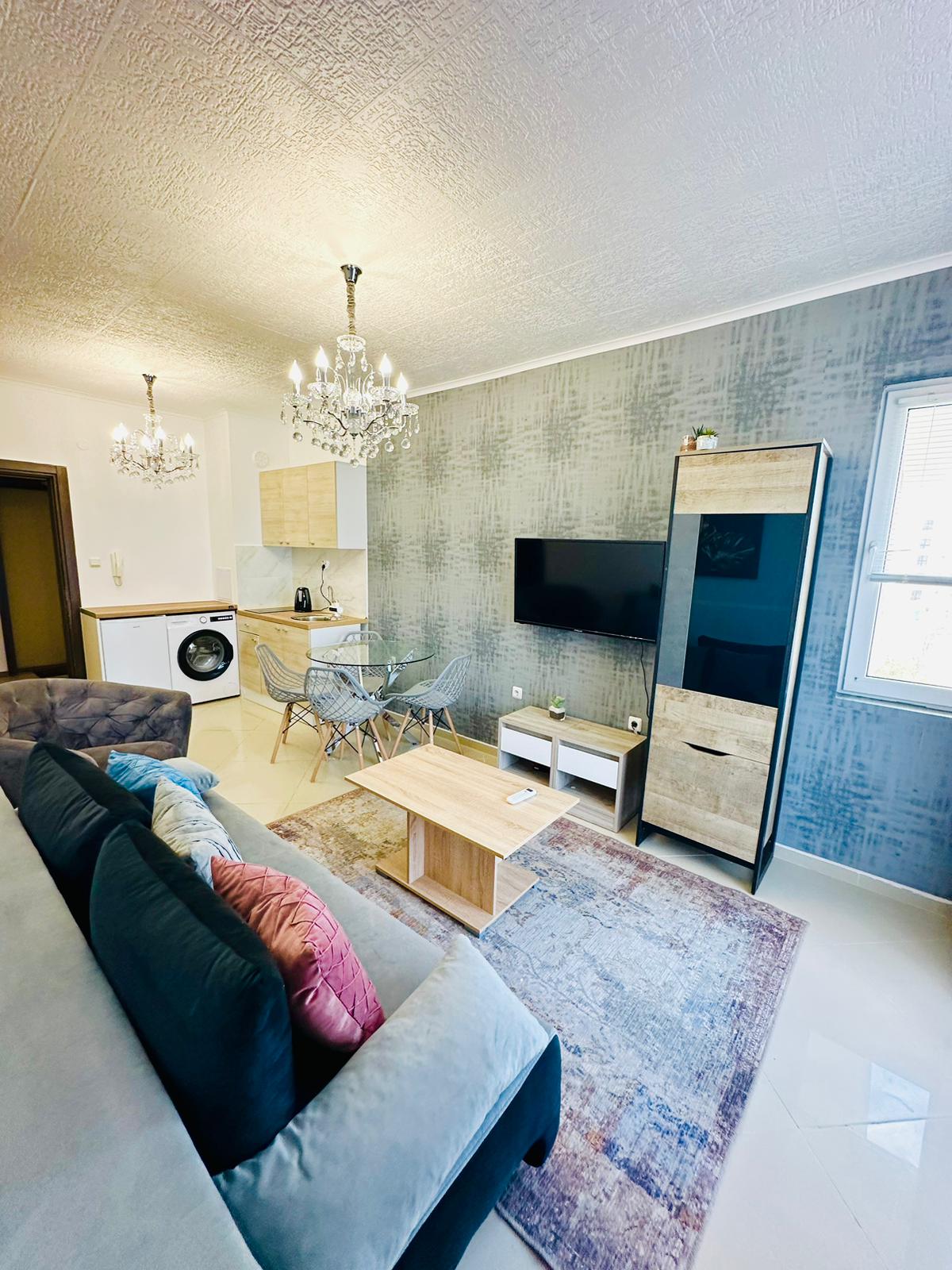 Апартаментът се продава в отлично състояние, със стилно обзавеждане и качествено оборудване, със следното разпределение – входно антре, всекидневна с малък кухненски бокс и кът за хранене, баня с тоалетна и душ кабина, светла спалня, тераса с хубав изглед към планината.