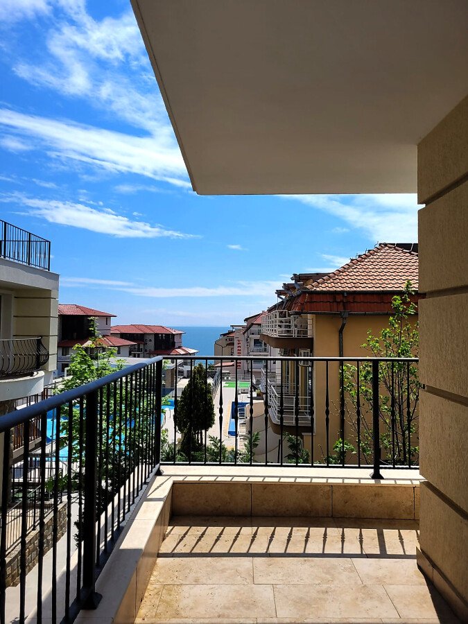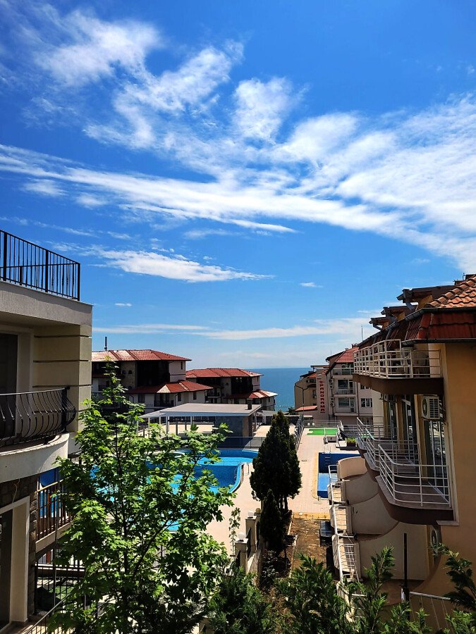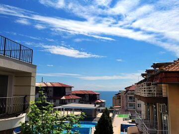 Студиото е разположено на партерен етаж и се състои от всекидневна, баня с тоалетна и душ кабина, много голям балкон с красива гледка към морето и басейна. Продава се без обзавеждане, което е отлична възможност да го мебелирате и оборудвате според Вашия стил и предпочитания!