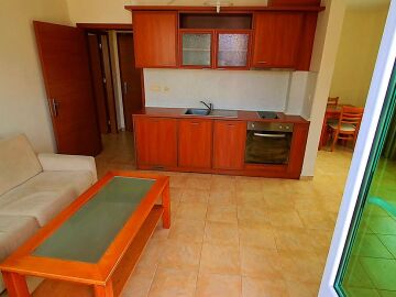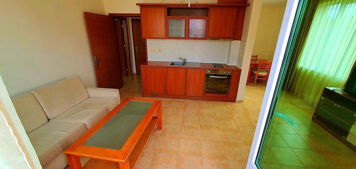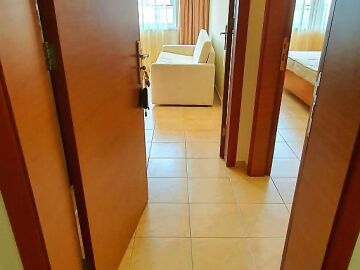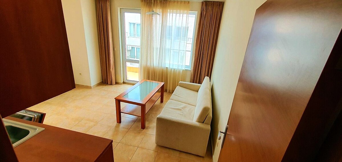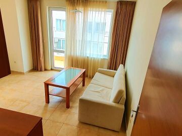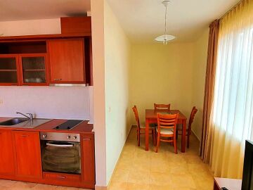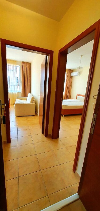 Апартаментът се продава в добро състояние, оборудван и обзаведен, с площ от 80 кв.м. и следното разпределение – входно антре, слънчева всекидневна с обособен кухненски бокс и кът за хранене, уютна спалня, баня с тоалетна и душ кабина, тераса с хубав изглед към басейна. Във всяка стая има монтиран климатик.