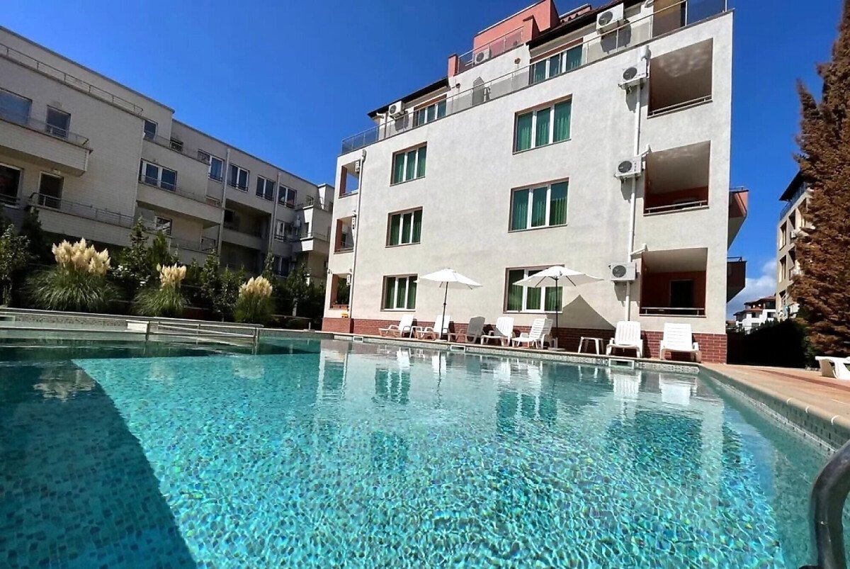Предлагаме за продажба просторен двустаен апартамент с гледка към басейна в уютния комплекс „Тара“, разположен на удобно и комуникативно място в курортното селище Равда, на около 100 метра от плажната ивица и на пешеходно разстояние от магазини, ресторанти и кафенета, автобусни спирки, летни забавления.