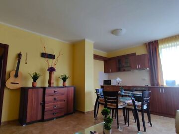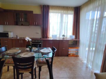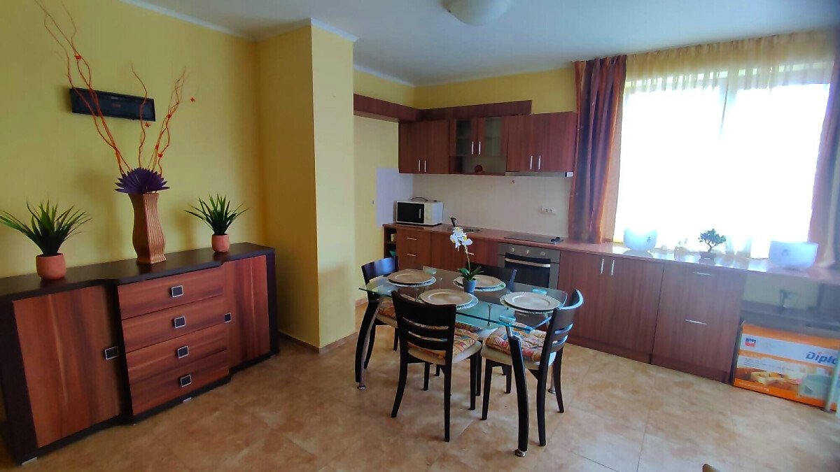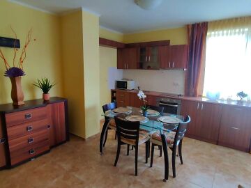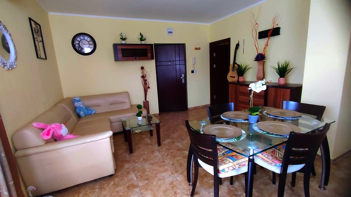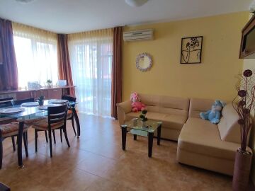 Апартаментът е разположен на втори етаж, продава се с необходимото обзавеждане и оборудване, със следното разпределение – входно антре, просторна всекидневна с кът за хранене и кухня, спалня, баня с тоалетна и душ кабина, балкон.