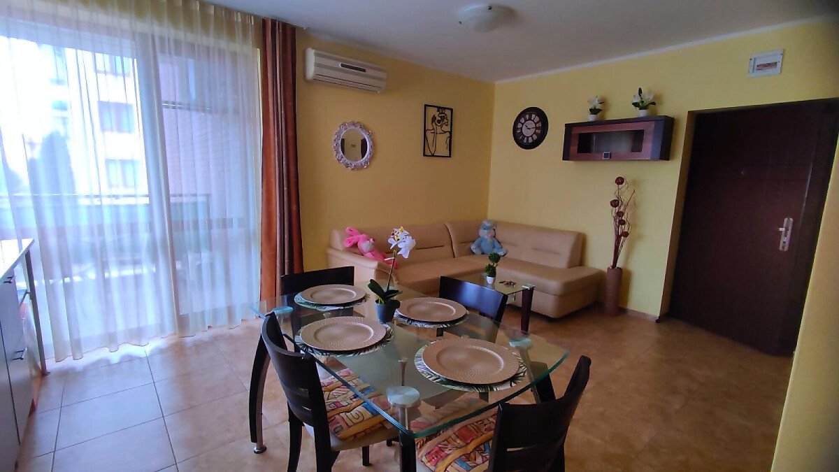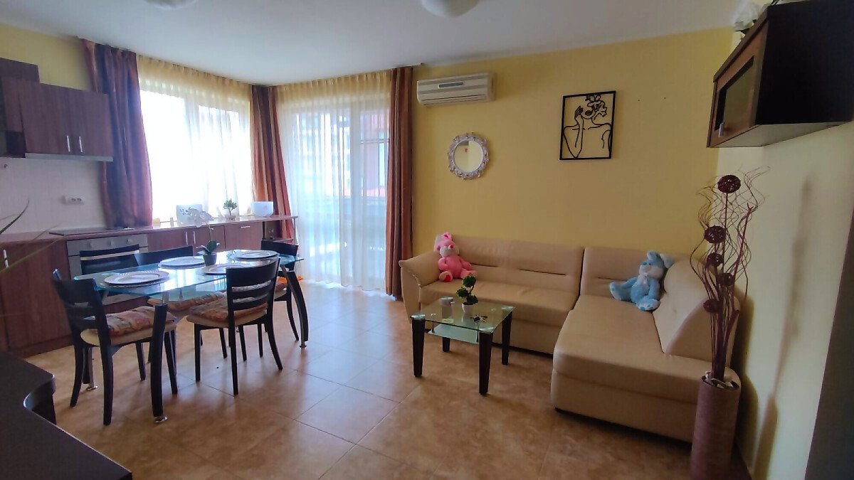 Предлагаме за продажба чудесен двустаен апартамент в жилищния комплекс „Аполон 3“, разположен в курортното селище Равда, в непосредствена близост до град Несебър и само на 300 метра разстояние от плажната ивица с фин златист пясък.