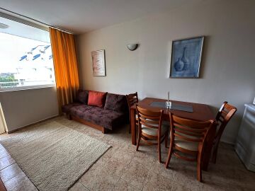 Апартаментът се продава в добро състояние, с обзавеждане и оборудване и следното разпределение: