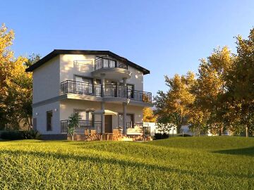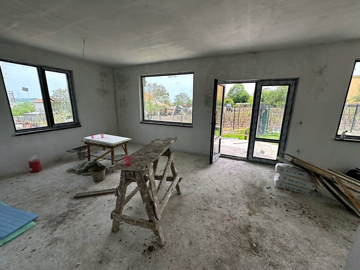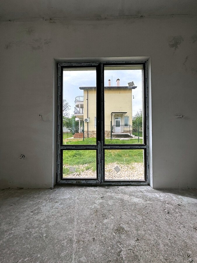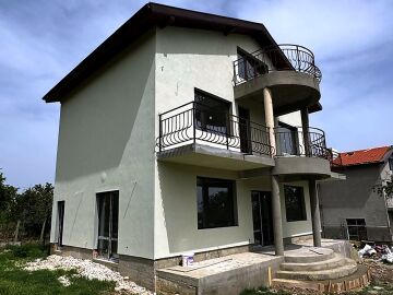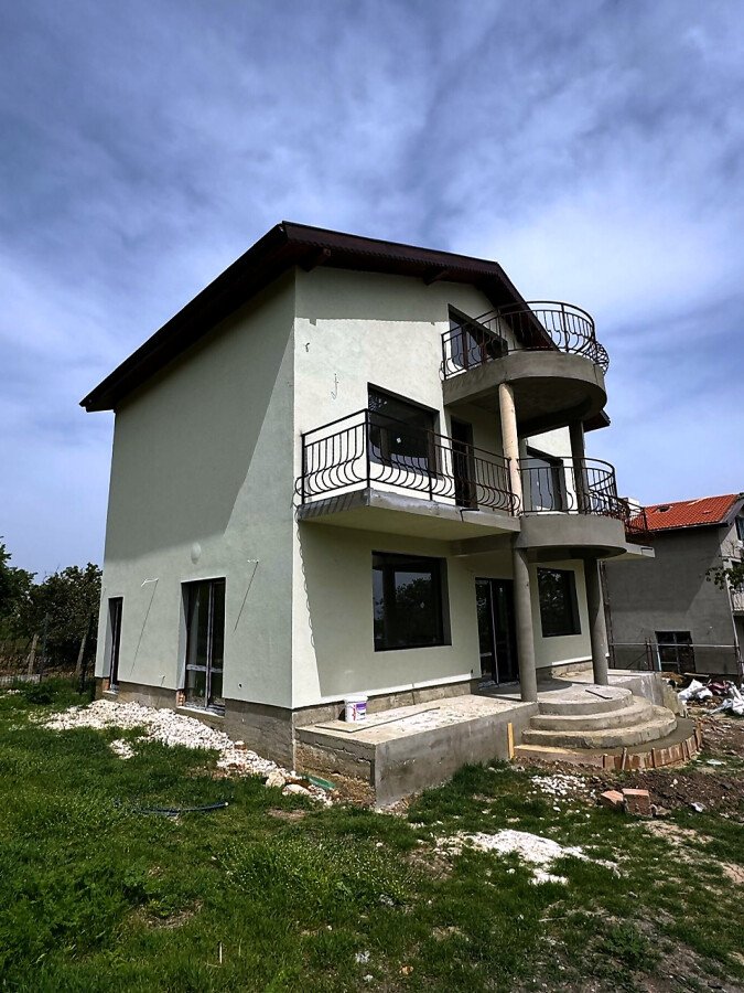 Къщата е завършена с висококачествени материали по дизайнерски проект, с големи, просторни стаи и високи 3,20m тавани, като е развита на три етажа - двата по 85м2 и тавански ( със скосявания ) с площ 75м2 - обща застроена площ 245м2. Разпределението е както следва: Първи етаж - просторна дневна с кухненска част, тоалетна, помощна стая (перално помещение) и веранда. Втори етаж - състои се от две големи спални, като всяка е със собствена баня с тоалетна, и тераса с красива гледка към морето. Третият етаж представлява голямо помещение тип „Оpen space” с тераса. На него могат да се обособят две спални или просторен кабинет. Югоизточно изложение с красива панорама към морето. Дворно място с площ 500м2, красиво озеленено, с обособено паркомясто зад къщата. Къщата е завършена по БДС, има възможност да бъде завършена „до ключ“ при желание на клиента.