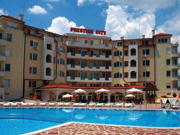 Предлагаме за продажба чудесен двустаен апартамент с гледка към басейна в прекрасния комплекс „Престиж Сити“, разположен в западната част на курорта Слънчев бряг, на 450 метра от плажната ивица и само на 250 метра от централната алея, където може да се насладите на разнообразие от магазини, заведения и летни атракции.