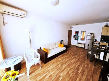 Апартаментът е просторен и функционален, напълно обзаведен и оборудван, със следното разпределение – голяма всекидневна с трапезария и кухненски бокс, слънчева спалня, баня с тоалетна, балкон.