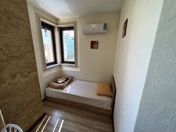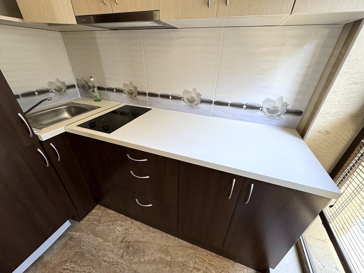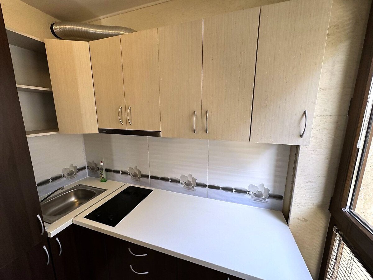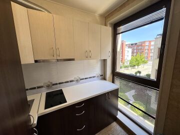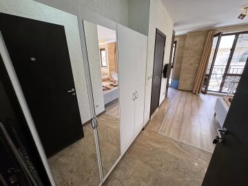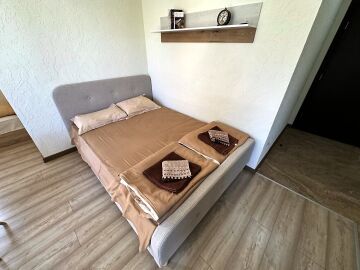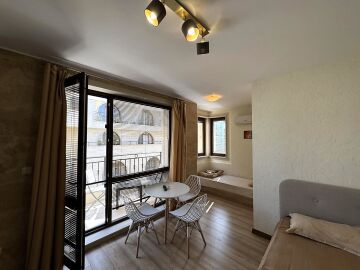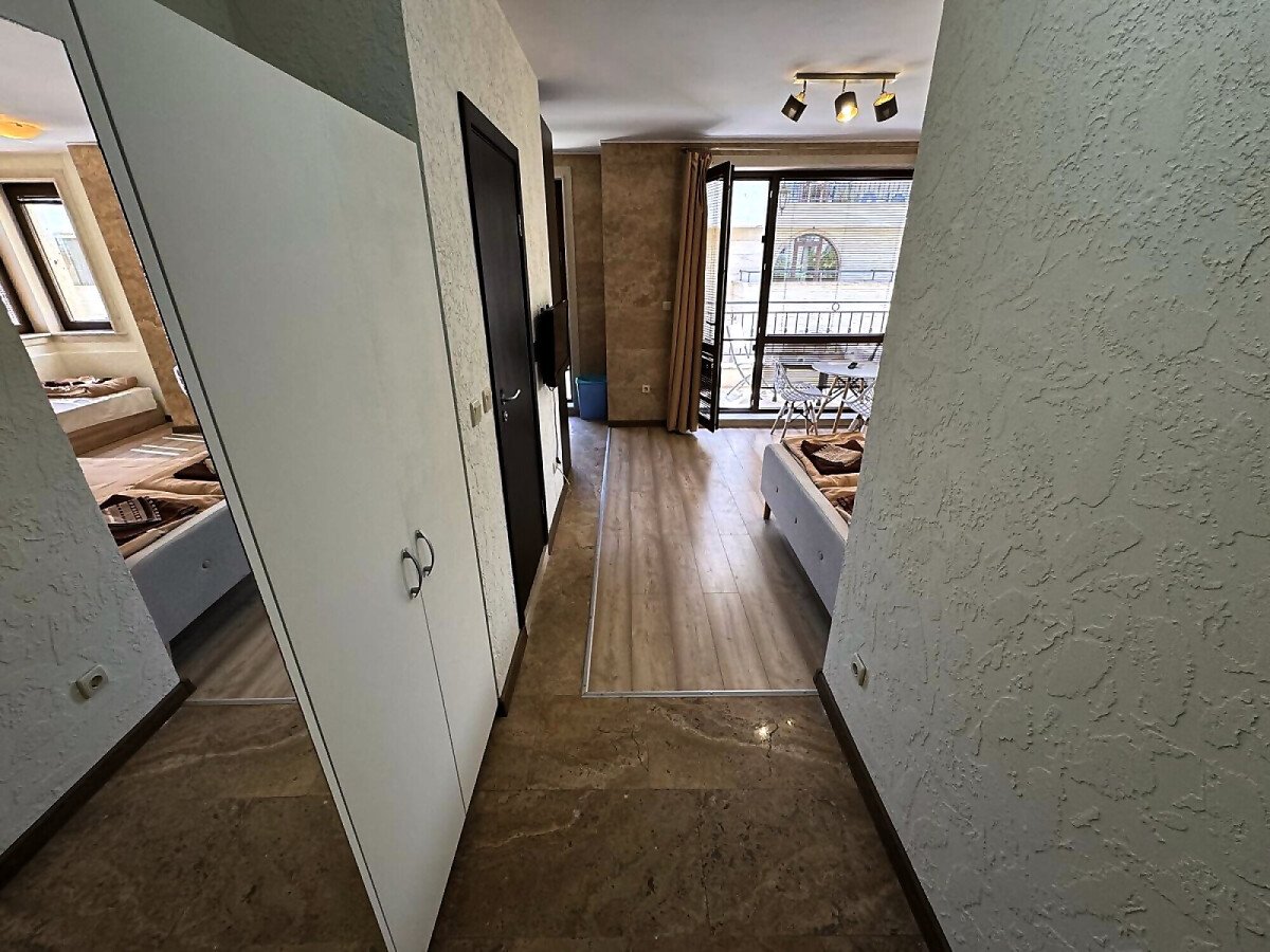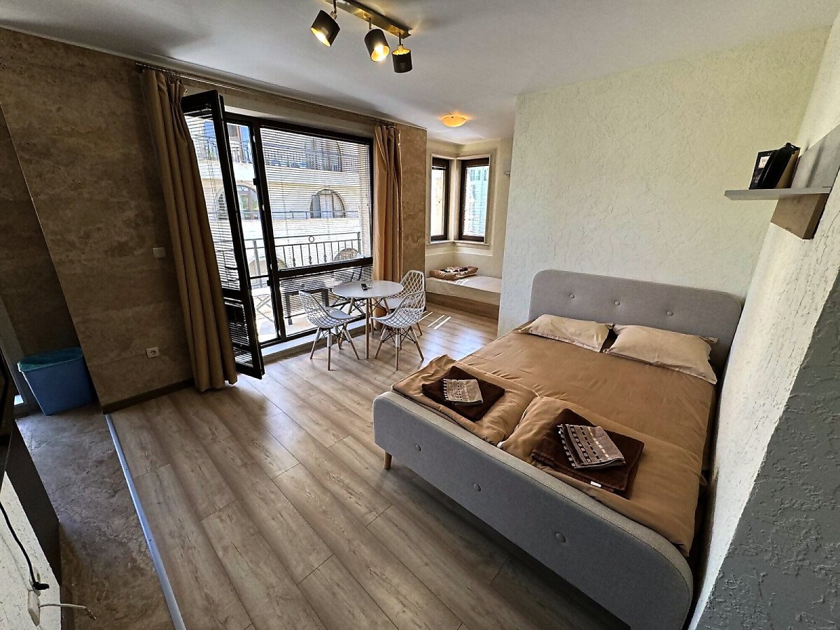 Студиото е напълно оборудвано и готово за живеене или отдаване под наем, със следното разположение - обособен кухненски бокс, кът за хранене, спалня и отделна ниша с единично легло, голям гардероб, баня с тоалетна.