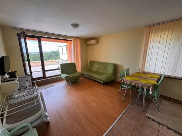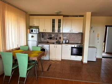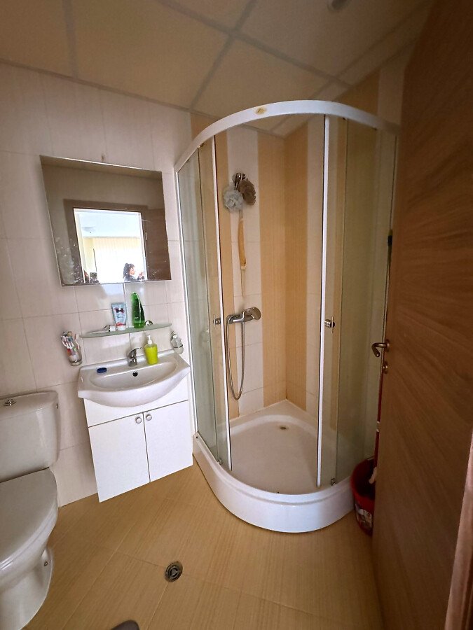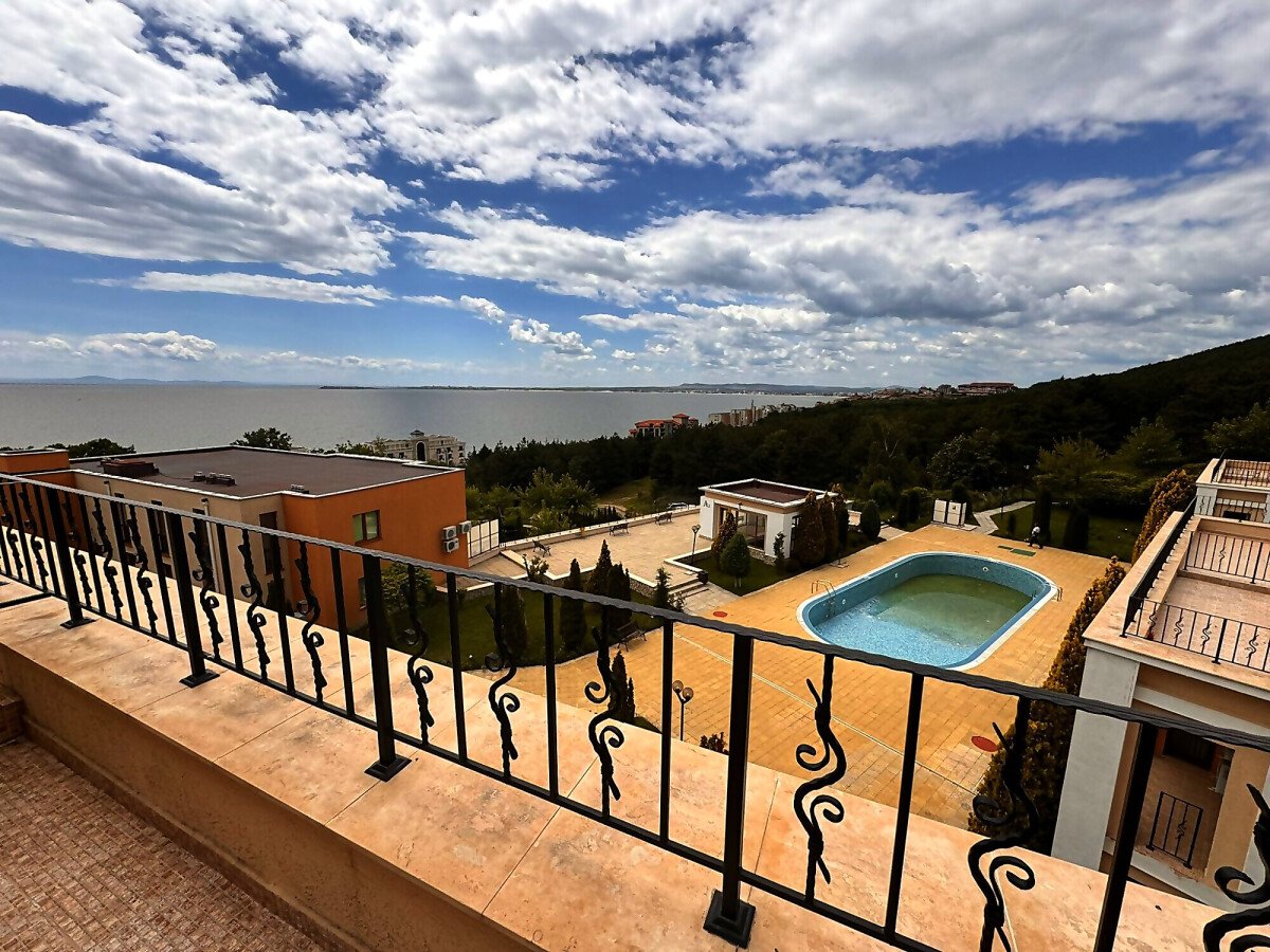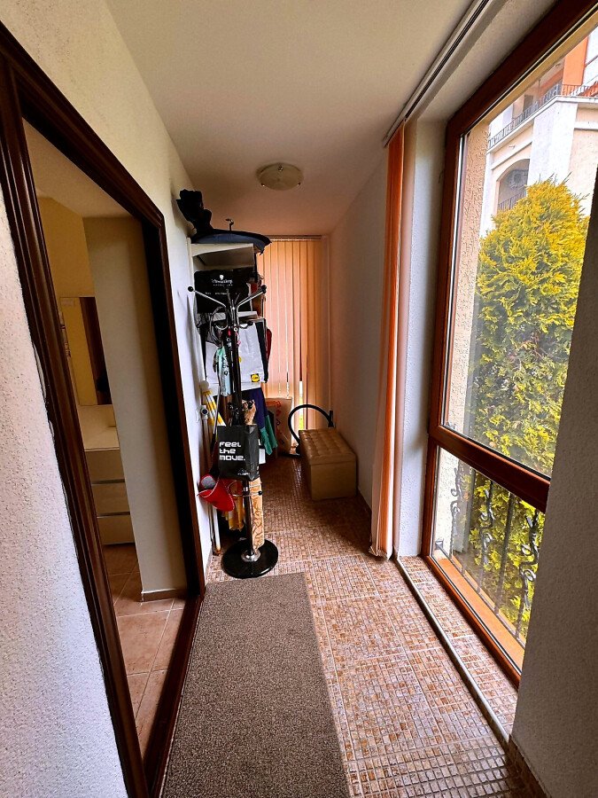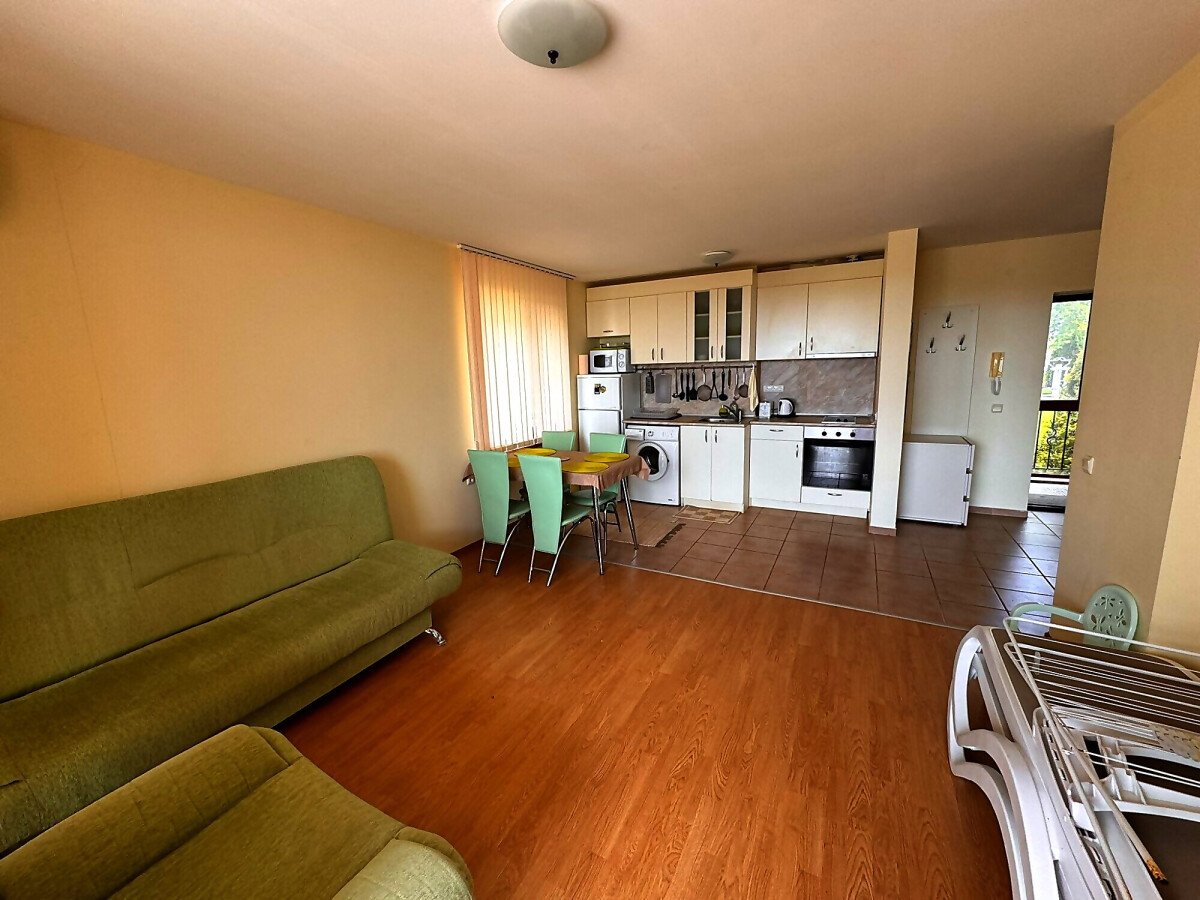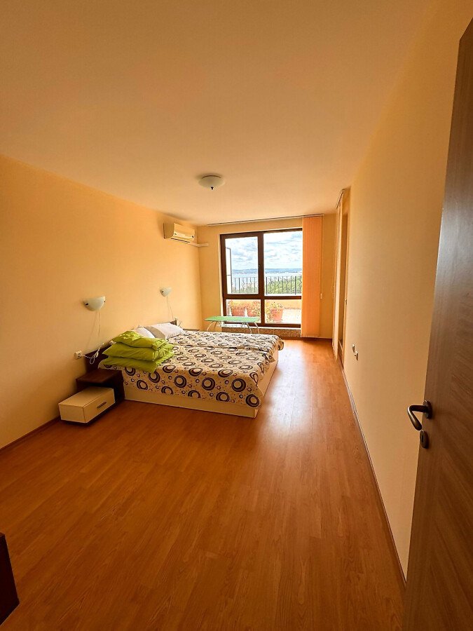 Апартаментът се продава в отлично състояние, напълно обзаведен и оборудван, със следното разпределение – входно антре, голяма всекидневна с трапезария и кухненски бокс, коридор, баня с тоалетна и душ кабина, просторна и уютна спалня, много голям балкон с красива панорамна гледка към морето и към басейна.