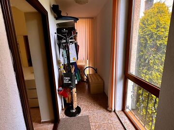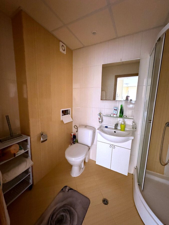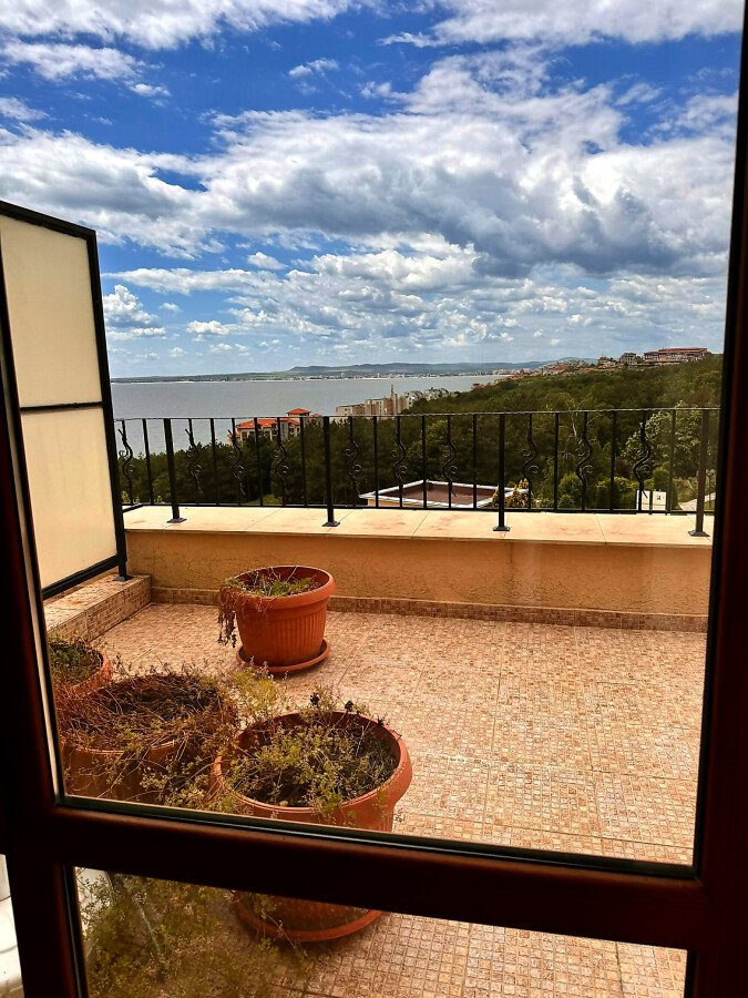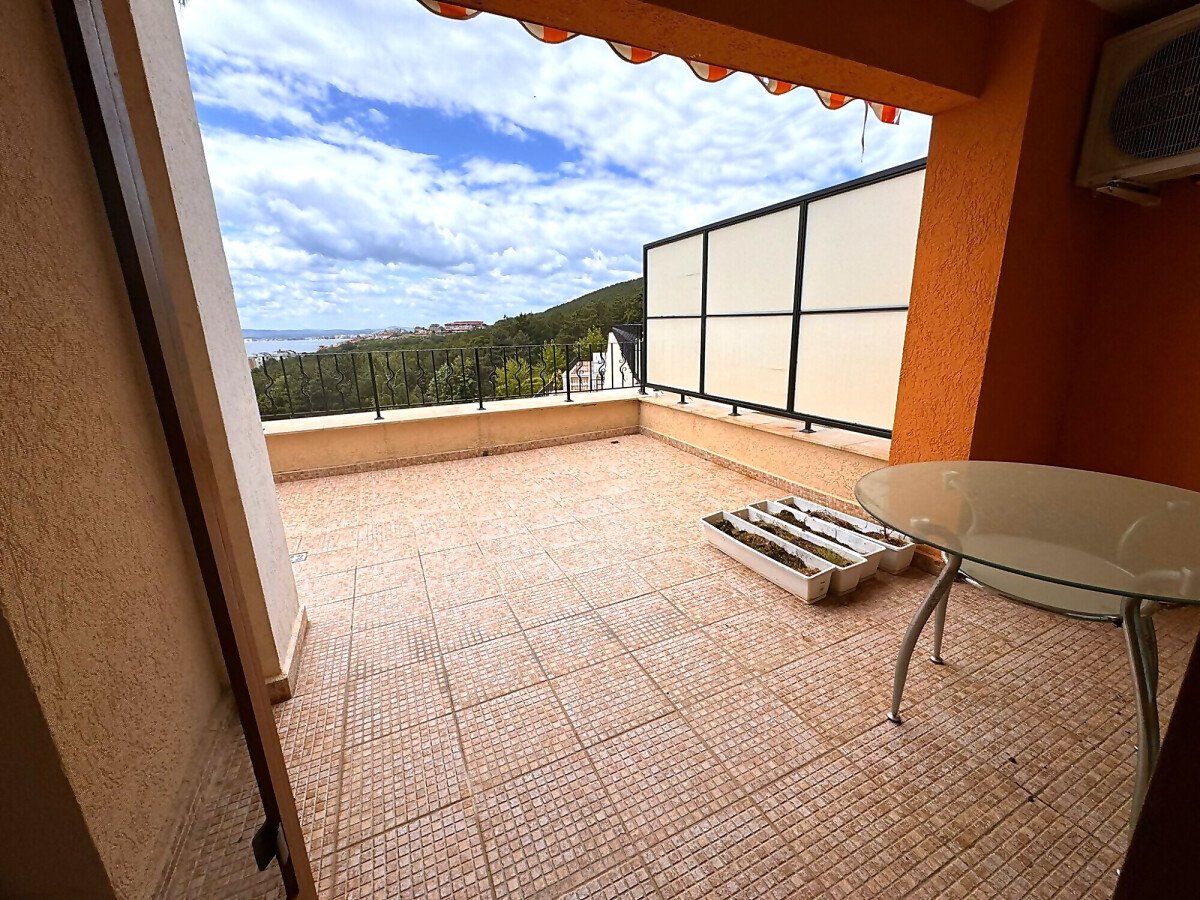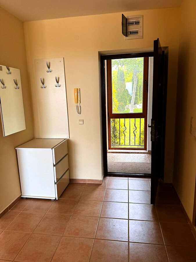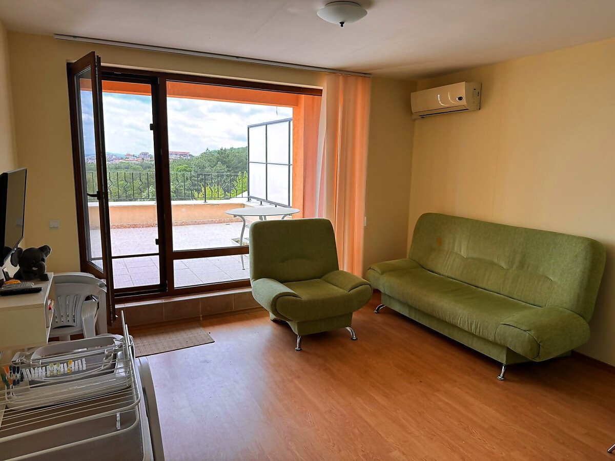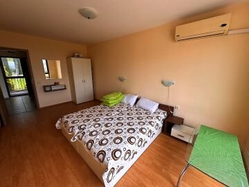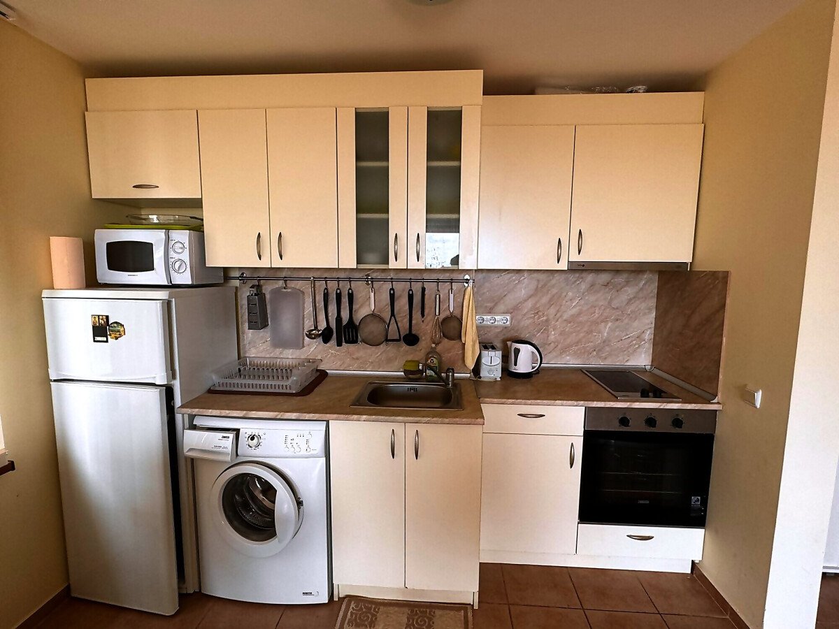 Апартаментът се продава в отлично състояние, напълно обзаведен и оборудван, със следното разпределение – входно антре, голяма всекидневна с трапезария и кухненски бокс, коридор, баня с тоалетна и душ кабина, просторна и уютна спалня, много голям балкон с красива панорамна гледка към морето и към басейна.