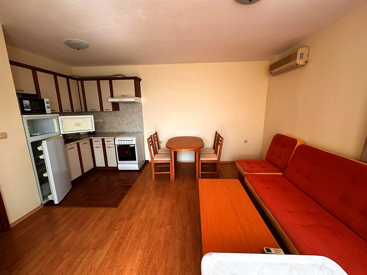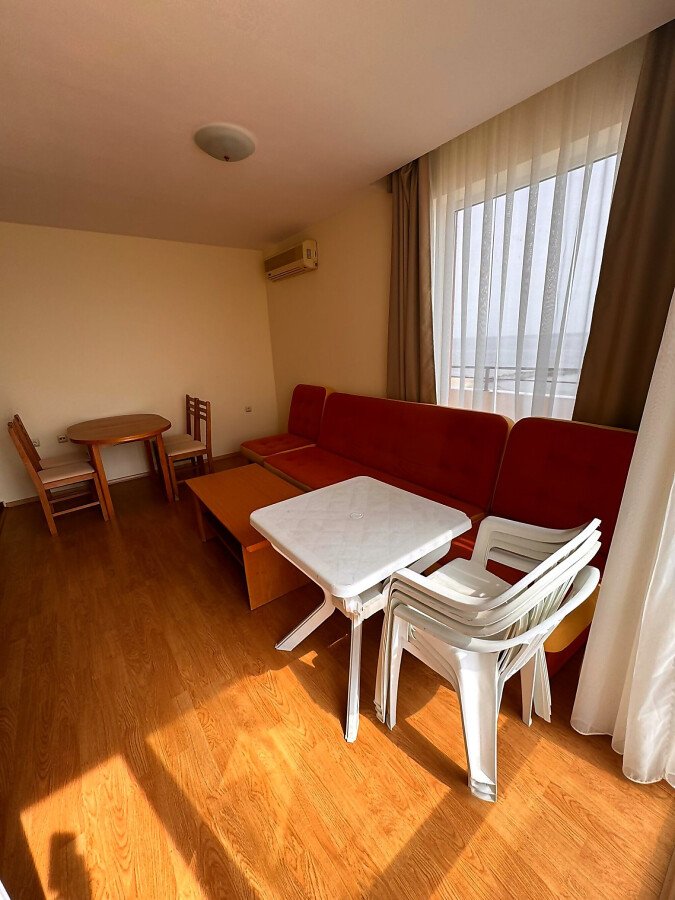 Изключително светъл и просторен, имотът е със следното разположение - антре, всекидневна с кухненски бокс и кът за хранене, баня с тоалетна и голям балкон с морска панорама. Оборудван е с всичко необходимо и е чудесна възможност за инвестиция или за живеене.