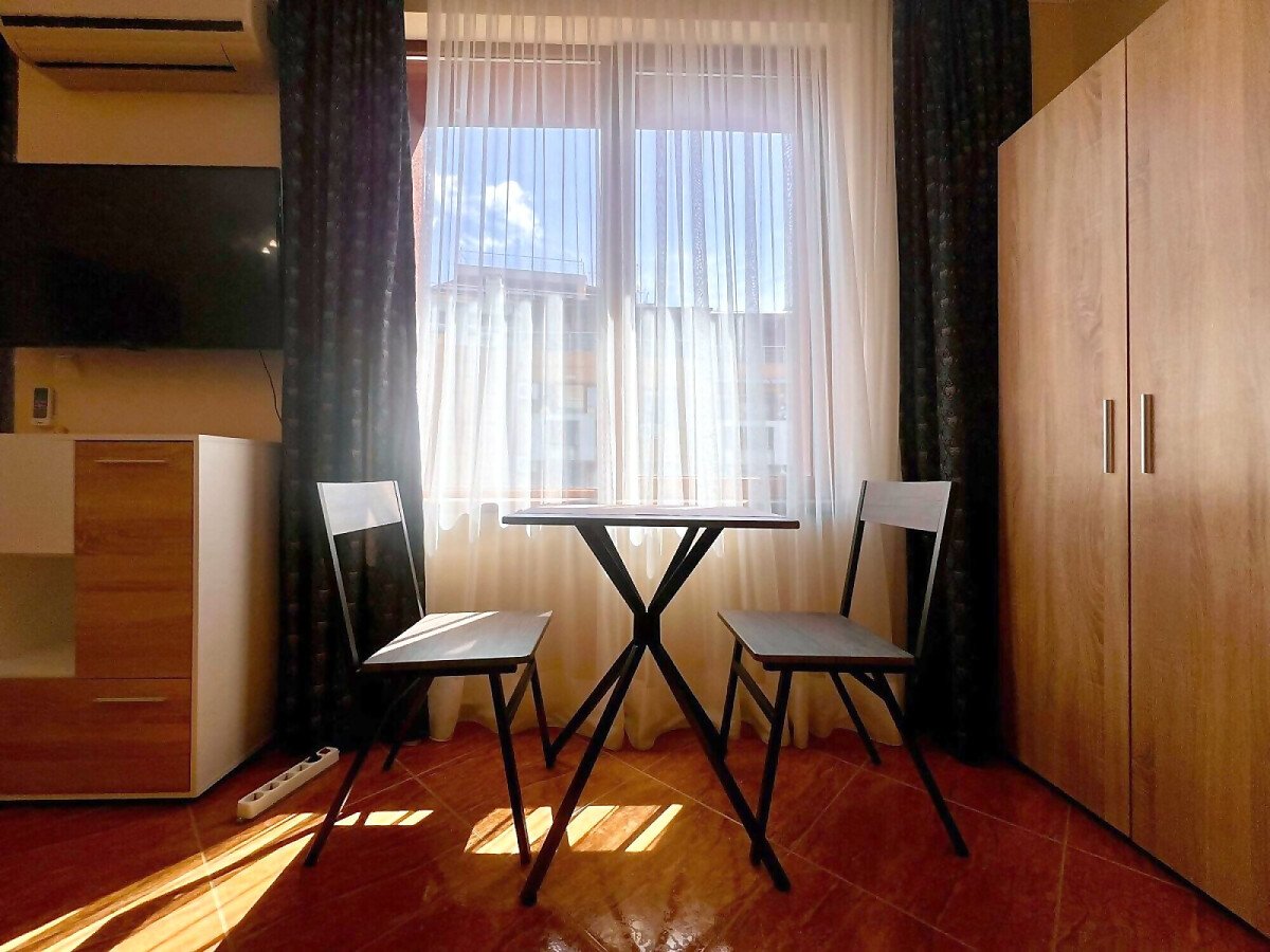 В комплекса има студиа, едноспални и двуспални апартаменти.