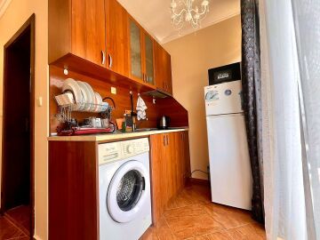 Центърът на курорта е само на 10 минути пешеходно разстояние, като там може да откриете всичко необходимо – разнообразие от магазини, заведения, удобни автобусни спирки, медицински център, аптека.