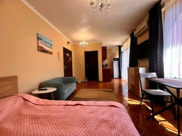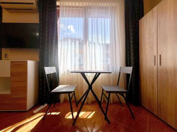 Предлагаме за продажба уютно студио в прекрасния жилищен комплекс „Хелиос“, разположен само на 150 метра от плажната ивица и морето в елитния курорт Свети Влас, предпочитан от многобройни български и чуждестранни туристи.