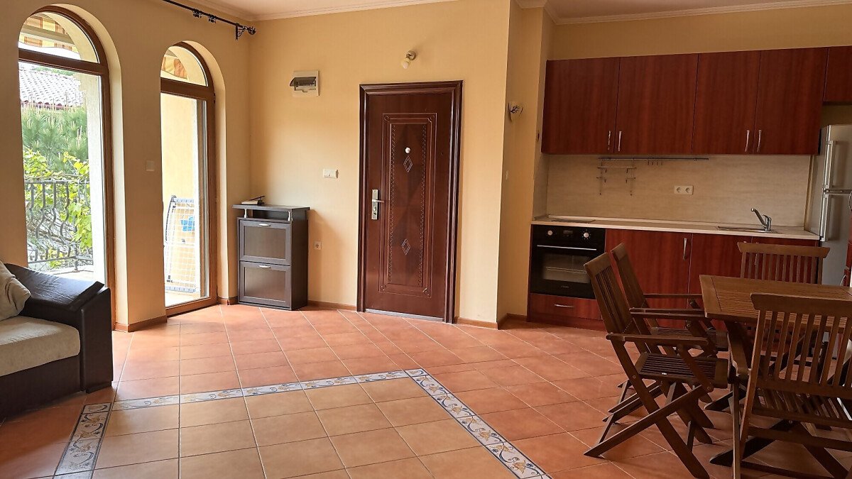 Предлагаме на Вашето внимание просторно двустайно жилище, разположено на втори етаж от вила в живописния курорт Елените. Сградата е част от затворения комплекс "Villa Romana", който се намира в един от най-красивите райони на българското черноморие - там, където боровите гори срещат морето.