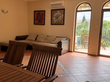 Вилата се намира в тих и спокоен район, обградена от красиво озеленени площи в самото подножие на планината. Локацията е изключително комуникативна, на броени минути от плажа и в близост до ресторанти, кафенета, магазини.