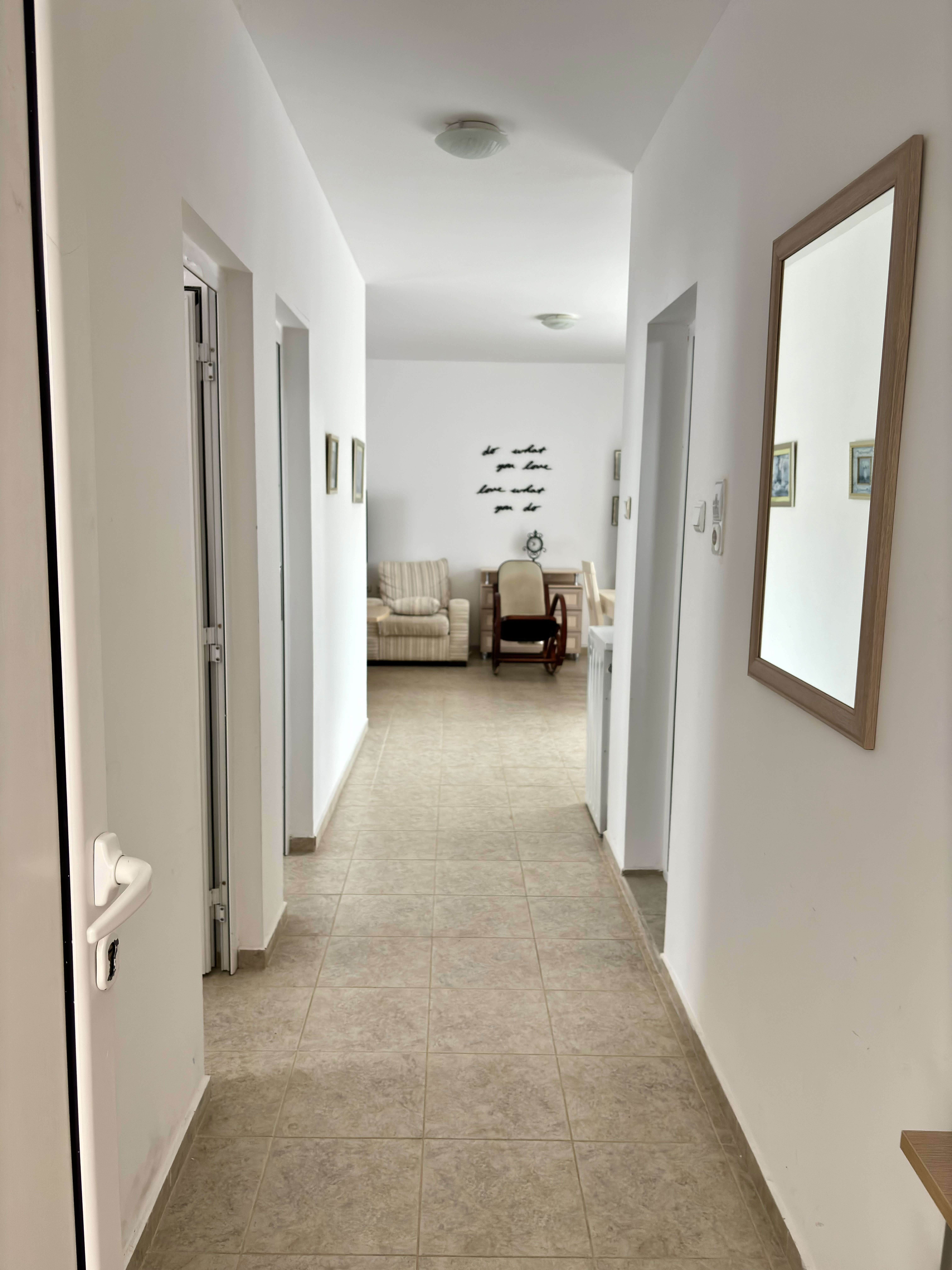 Апартаментът е разположен на трети жилищен етаж, а разпределението е както следва: входно антре, всекидневна с обособен кухненски бокс, кът за хранене, две спални, баня с тоалетна, балкон с гледка към басейна. Жилището е обзаведено с всичко необходимо и е готово за нанасяне.