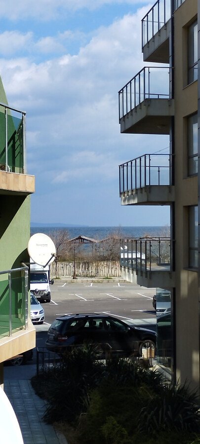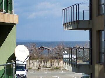 Предлагаме за продажба двустаен апартамент в нова сграда, разположена на първа линия в град Поморие, с площ от 87 кв.м. Състои се от хол с кухня, спалня, баня с тоалетна, коридор, склад (гардеробна) и обширна тераса. Апартаментът е напълно обзаведен и оборудван, подходящ и за целогодишно живеене.