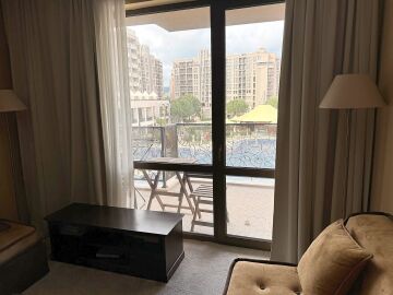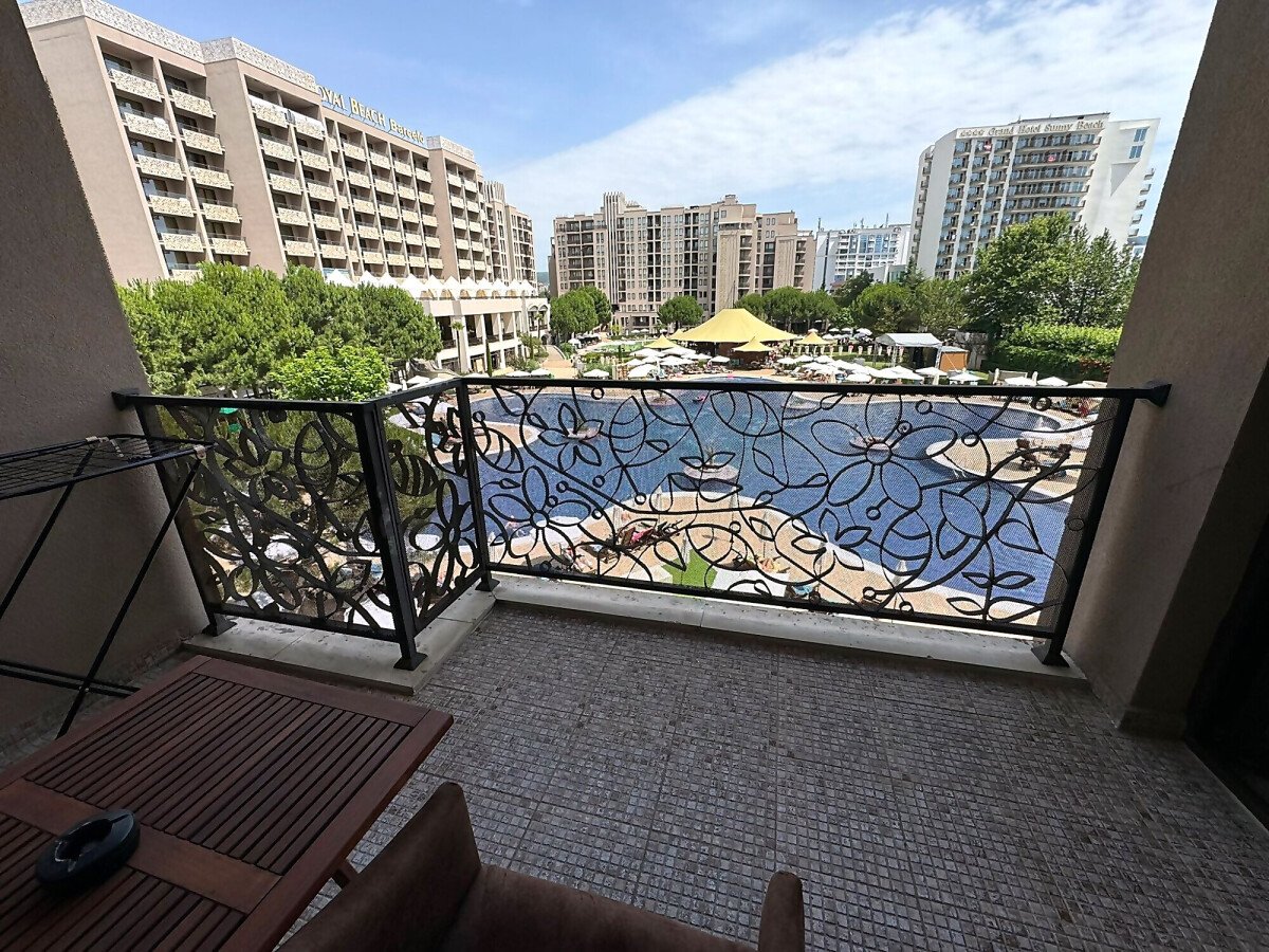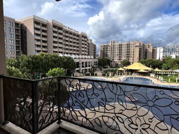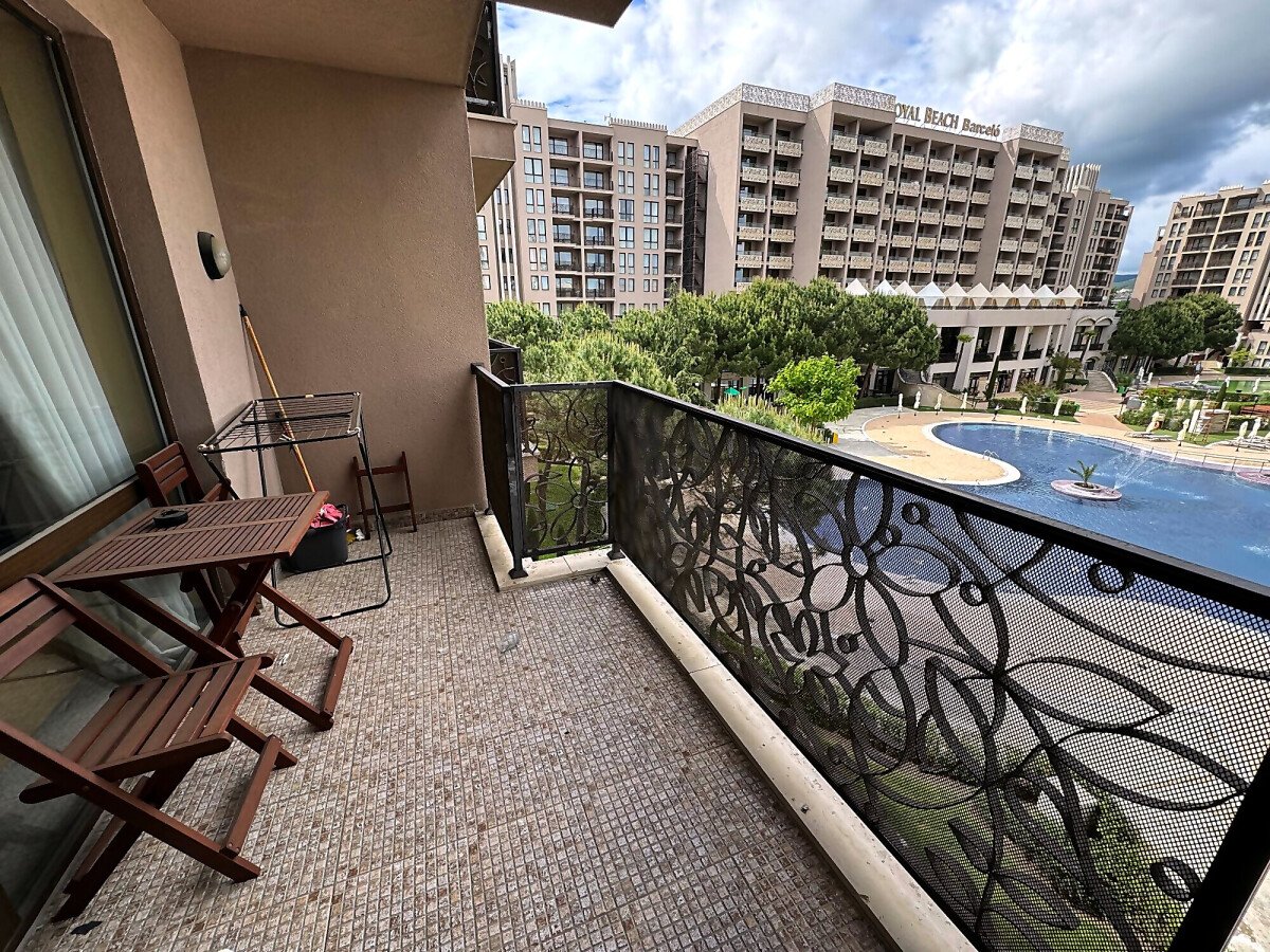 Предлагаме за продажба прекрасен двустаен апартамент с гледка към басейна в комплекс „Роял Бийч Барсело“, разположен само на 50 метра от морето и пясъчната плажна ивица на един от най-атрактивните и предпочитани курорти – Слънчев бряг, в непосредствена близост до централната алея. Там може да се насладите на разнообразие от летни атракции, ресторанти, магазини, барове и нощни клубове.