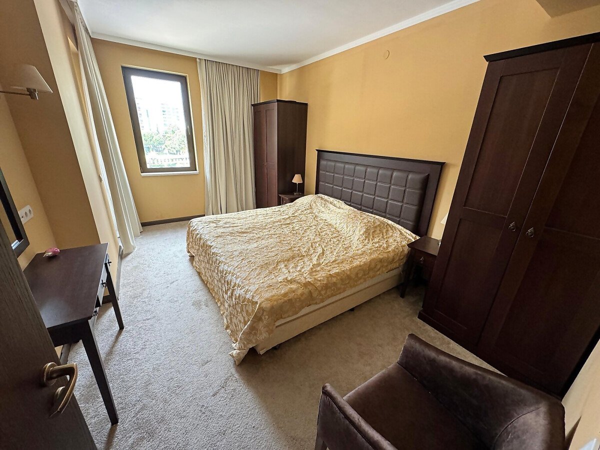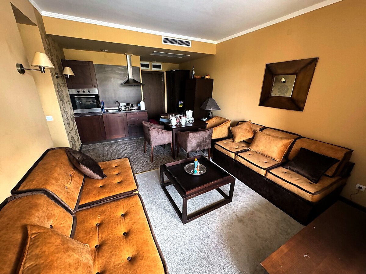 Апартаментът е слънчев и много функционален, със следното разпределение – входно антре, всекидневна с обособен кухненски бокс и зона за хранене, уютна спалня, баня с тоалетна и вана, балкон с чудесен изглед към басейна и отлично поддържаната вътрешна територия на комплекса.