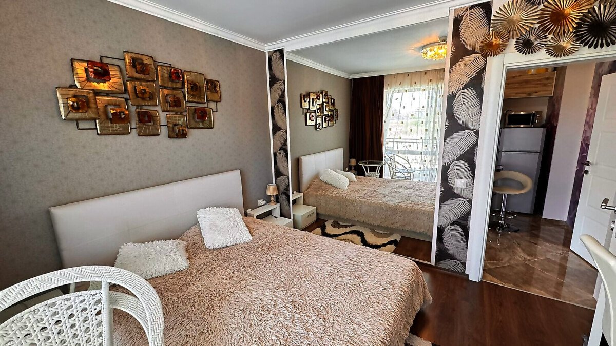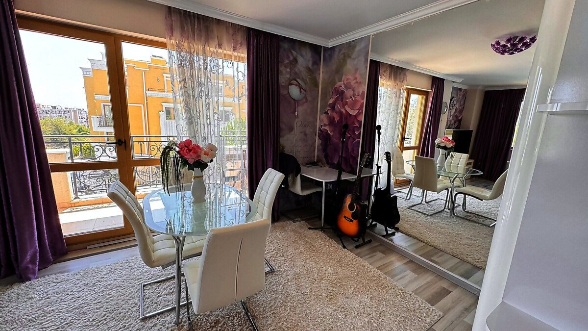 Предлагаме за продажба уникален тристаен апартамент с гледка към басейна, морето и планината в невероятния комплекс „Вила Флоренция“, разположен на 100 метра разстояние от плажната ивица и морето в елитното курортно градче Свети Влас. Само на 15 минути пешеходно разстояние е популярното яхтено пристанище „Марина Диневи“, където може да се насладите на елитни ресторанти, нощни клубове, плажни барове, както и на разнообразие от магазини.