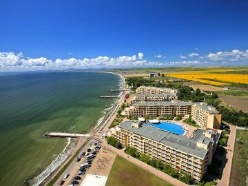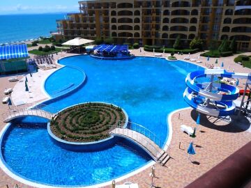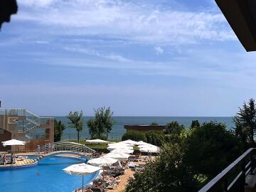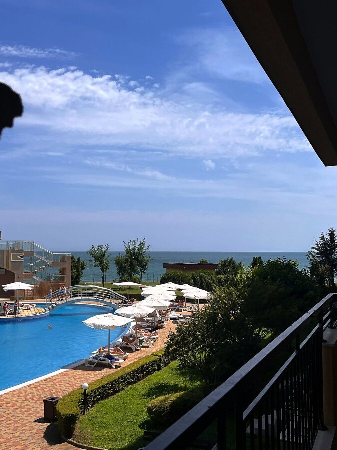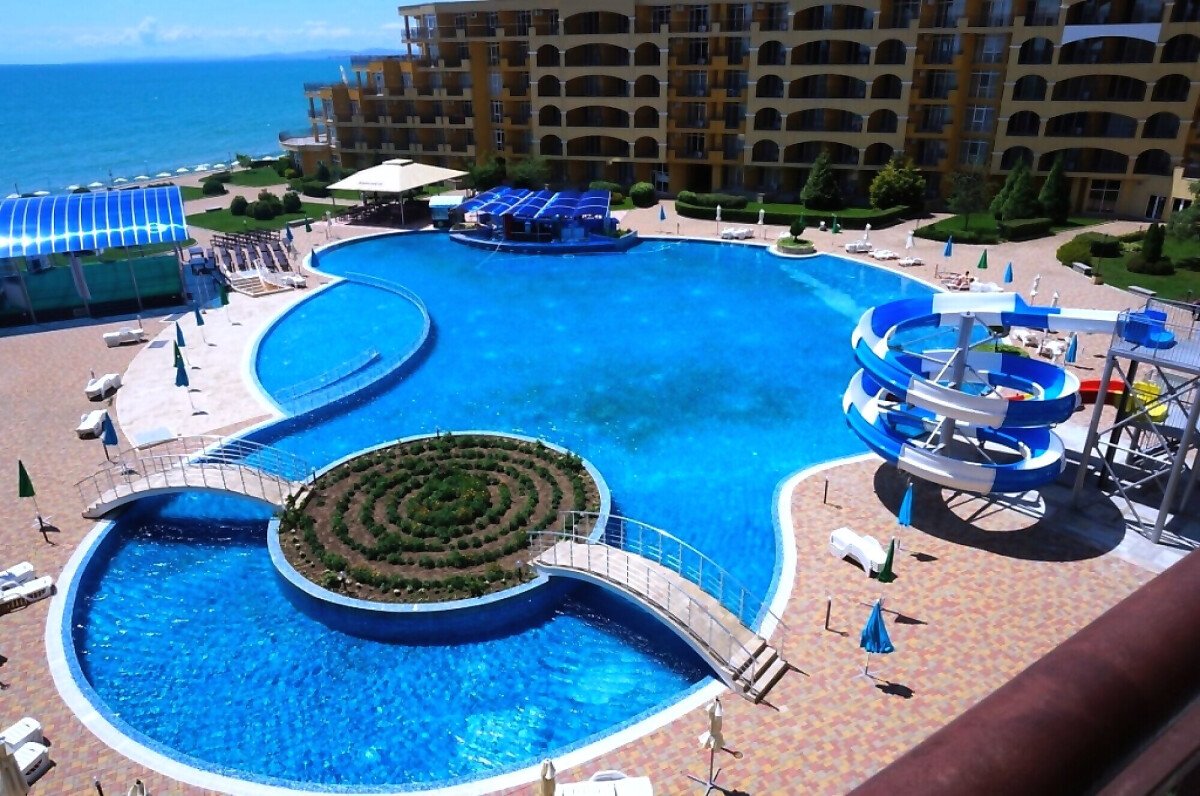 Предлагаме за продажба уютно студио с невероятна гледка в уникалния по рода си "Мидия Гранд Ризорт" - Ахелой. Комплексът е разположен на самия морски бряг и разполага с обширни общи части - перфектно поддържани зелени площи, два плувни басейна с просторна зона за слънчеви бани, детски площадки, ресторант, бар, магазини, салон за масажи, фитнес, рецепция, удобен паркинг и др.
