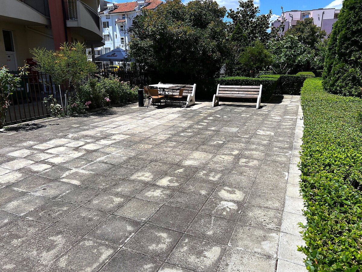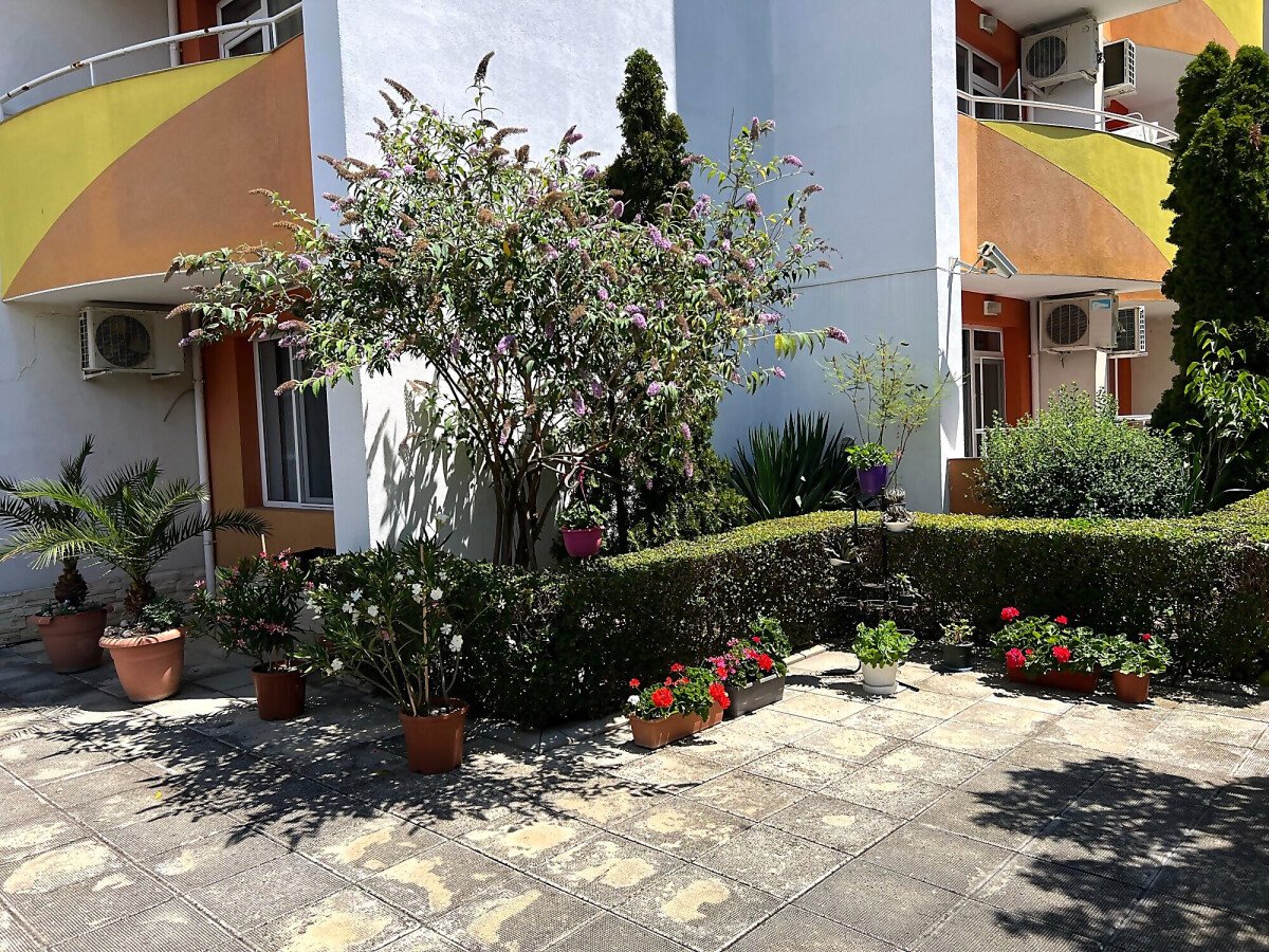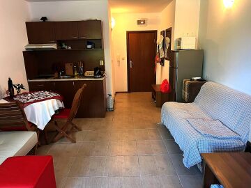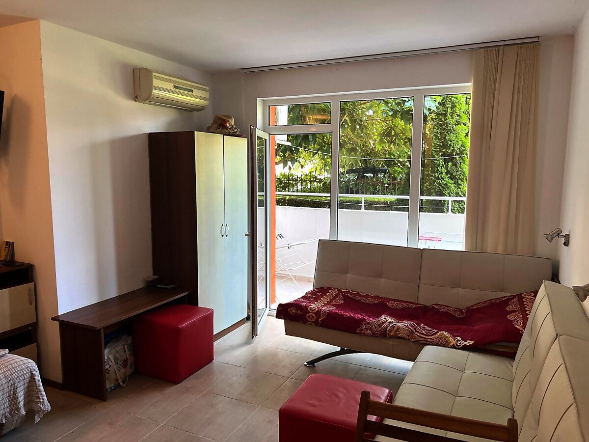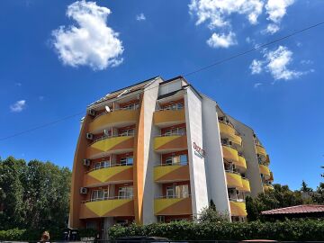 Продава се уютно студио в централната част на Слънчев бряг, близо до х-л Кубан и само на 500 метра от плажа. Студиото е на партера в пет етажния комплекс Ориндж Резиденс. Комплекса е тих, спокоен и охраняем целогодишно. Разполага с басейн, детски кът и красива беседка аранжирана с цветя. Зелените площи са много добре поддържани. Около комплекса има богат избор на заведения за хранене и платени паркинги. 12 евро на квадратен метър е годишната такса поддръжка.