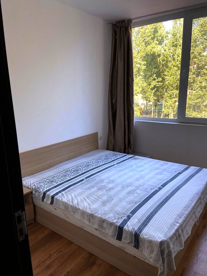 Разпределението е следното: антре, всекидневна с кухненски бокс и кът за хранене, спалня, баня с тоалетна и вана, балкон с гледка към озеленените площи и двора.