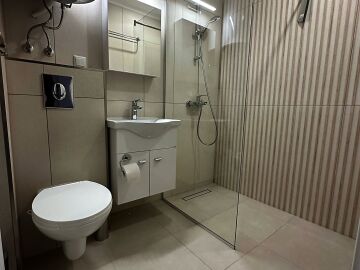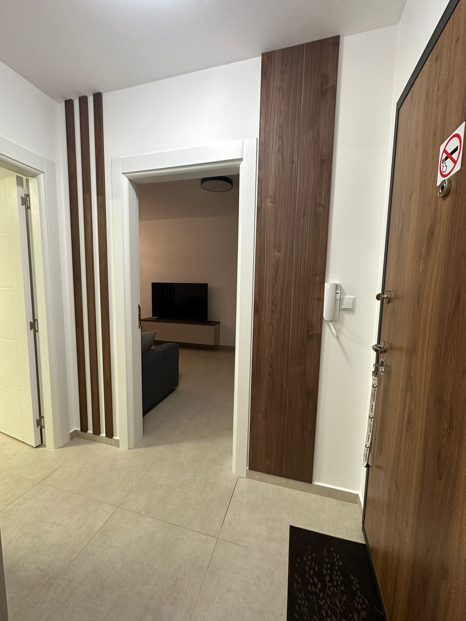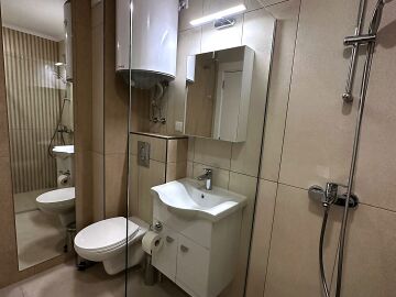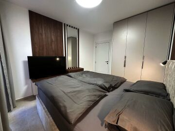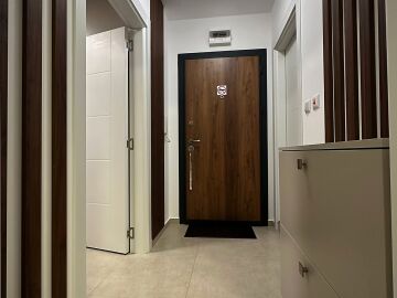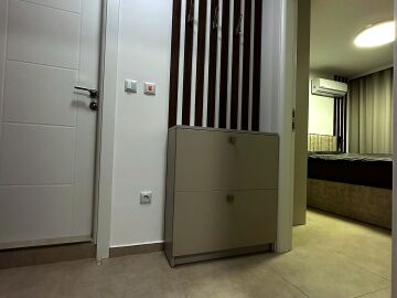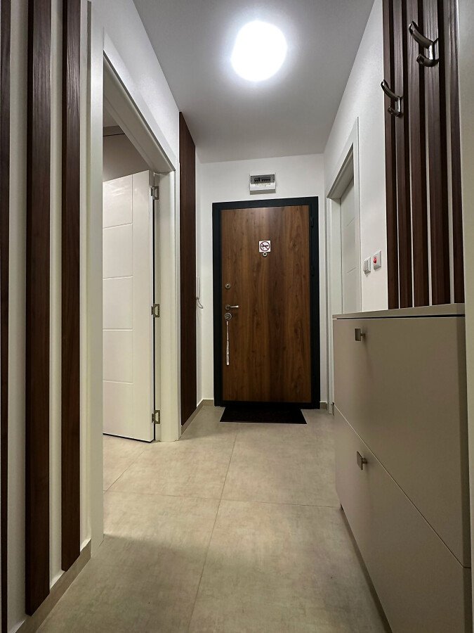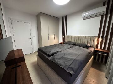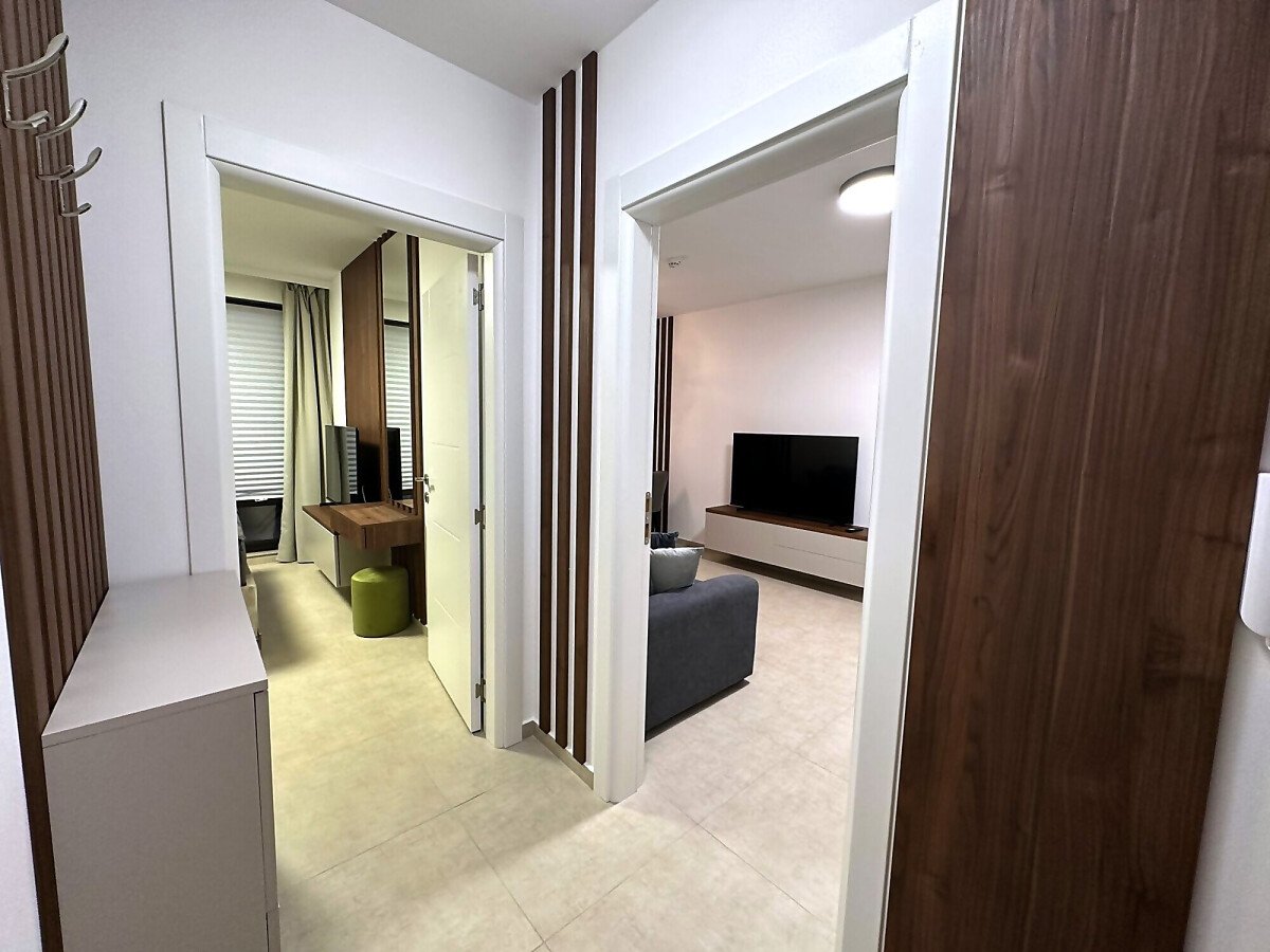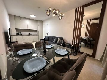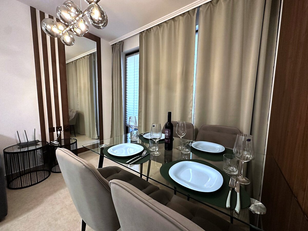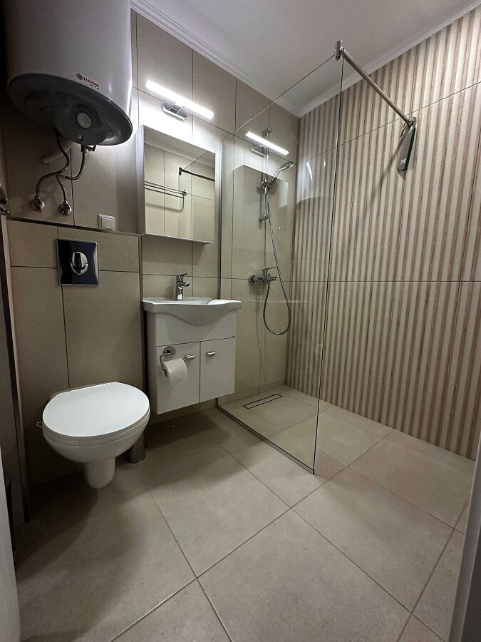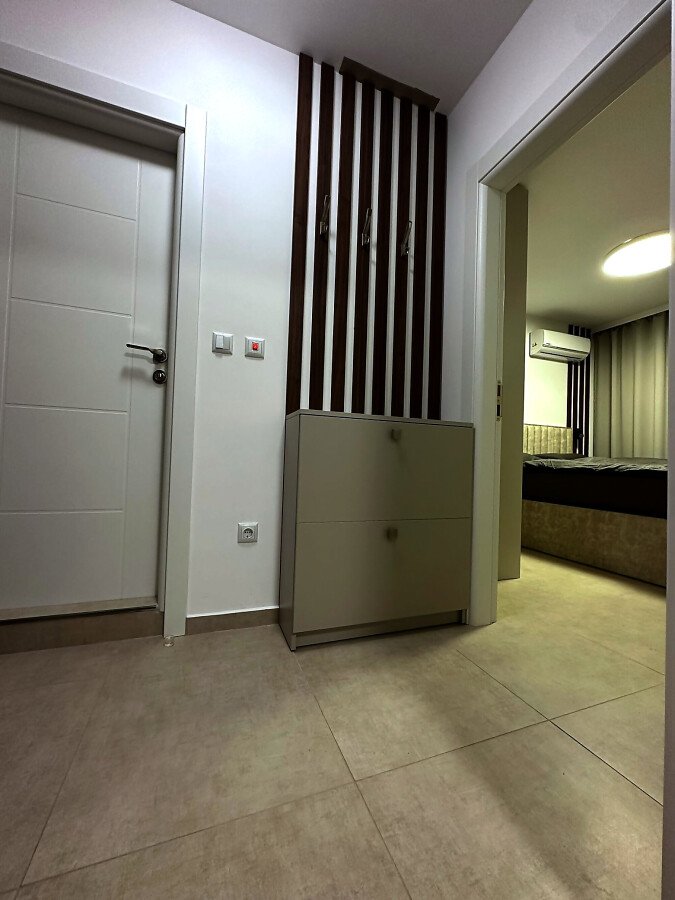 Апартаментът е разположен на пети етаж и се продава в отлично състояние, с ново и стилно обзавеждане, качествено оборудване и се състои от входно антре, уютна всекидневна със зона за хранене и кухненски бокс, спалня, баня с тоалетна и душ кабина, слънчев балкон с красива гледка към морето.