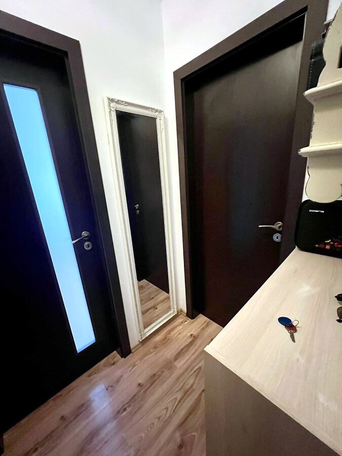 Апартаментът е разположен на трети жилищен етаж и има следното разпределение: антре, уютна всекидневна с обособен кухненски бокс и кът за хранене, спалня, баня с тоалетна и душ кабина, балкон. Продава се напълно оборудван и обзаведен с внимание към детайла и е готов за живеене или отдаване под наем.