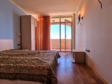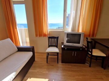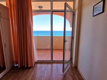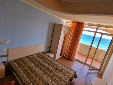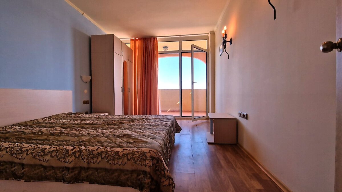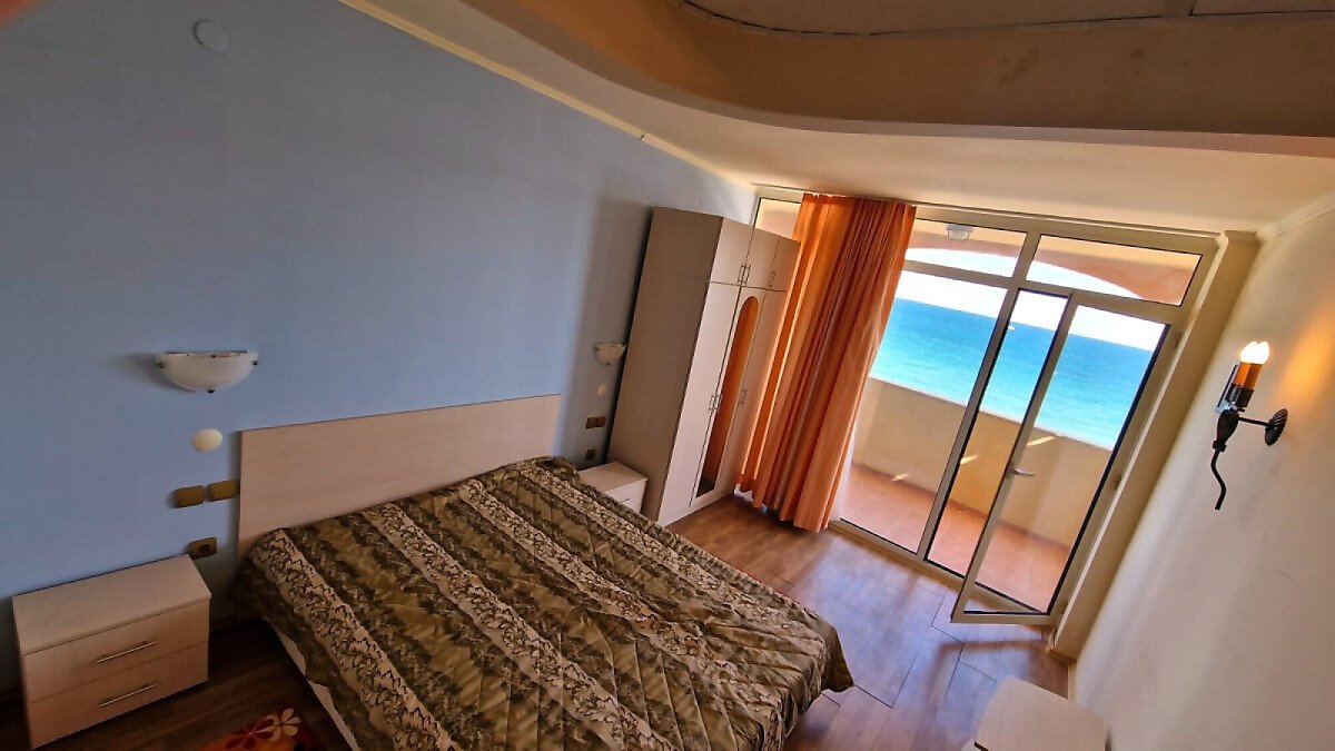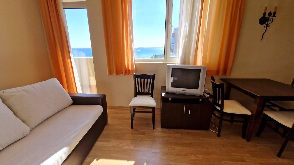 Предлагаме за продажба светъл двустаен апартамент с невероятна панорамна гледка към морето в чудесния комплекс „Атриум Бийч“, разположен на първа линия в курорта Елените.