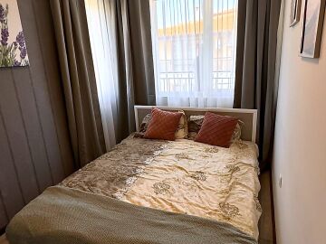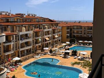 Предлагаме за продажба стилно обзаведен двустаен апартамент с гледка към морето и басейна в комплекс „Домус“, разположен в спокоен район в курорта Свети Влас, само на 250 метра от плажната ивица с разнообразие от плажни барове и водни спортове.