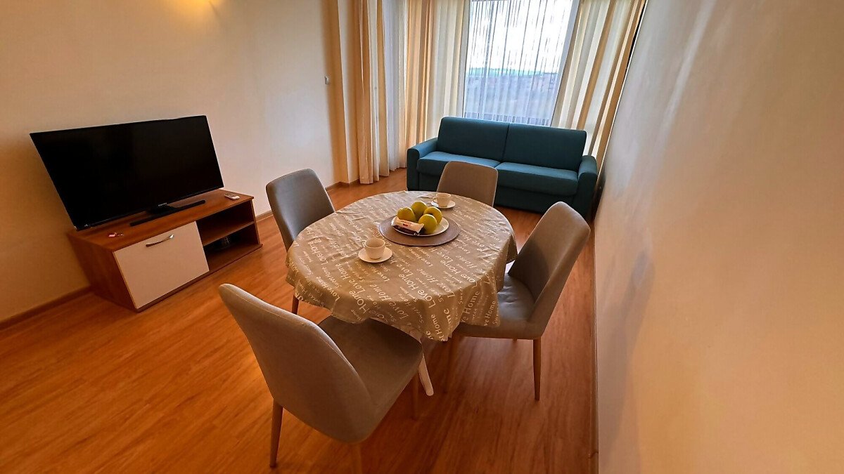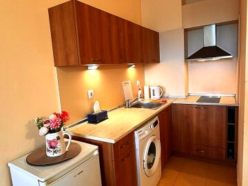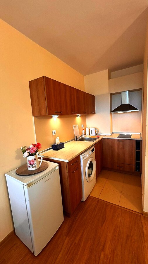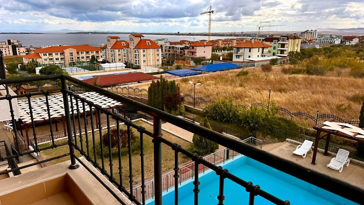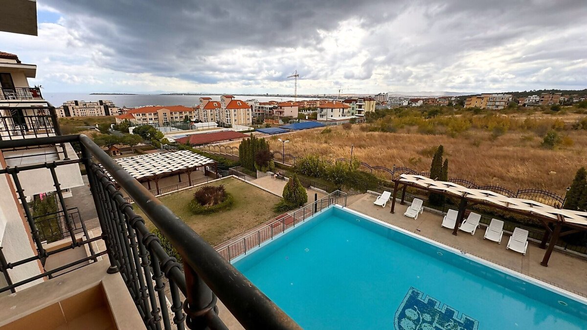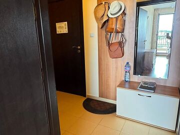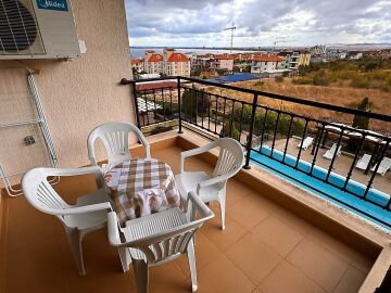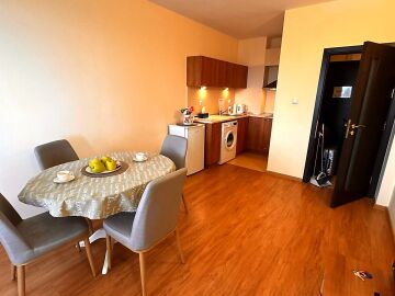 Апартаментът е слънчев и просторен, напълно обзаведен и оборудван с всичко необходимо, със следното разпределение – входно антре, уютна всекидневна с малък кухненски кът и зона за хранене, голяма спалня, баня с тоалетна, балкон с чудесен изглед към морето, басейна и курортите Свети Влас, Несебър и Слънчев бряг.