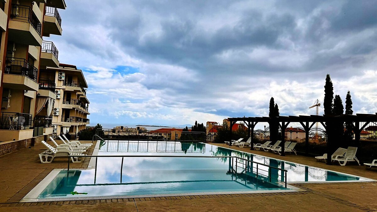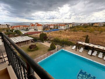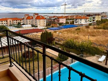 Предлагаме за продажба прекрасен двустаен апартамент с уникална панорамна гледка към морето и към басейна в комплекс „Макон Резиденс 2“, разположен в Свети Влас, в комуникативен район с развита инфраструктура, на 600 метра разстояние от морето и плажната ивица. Комплексът впечатлява с красива архитектура, висококачествено строителство и отлично поддържана територия.