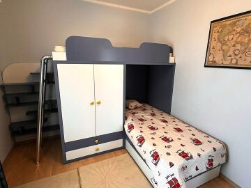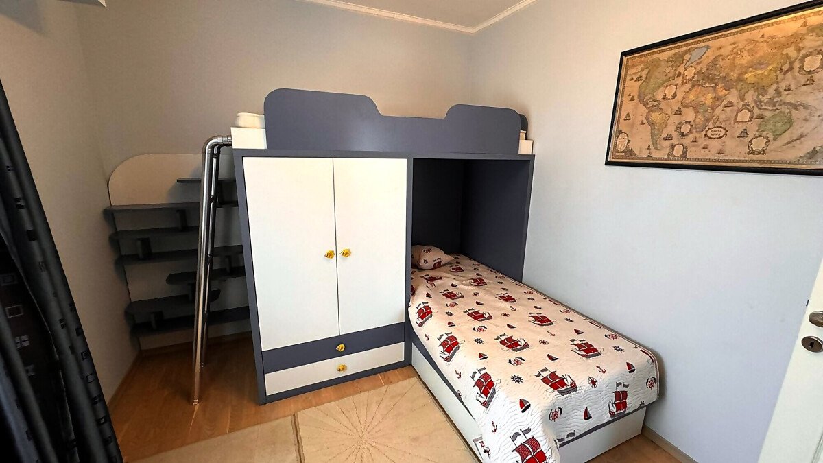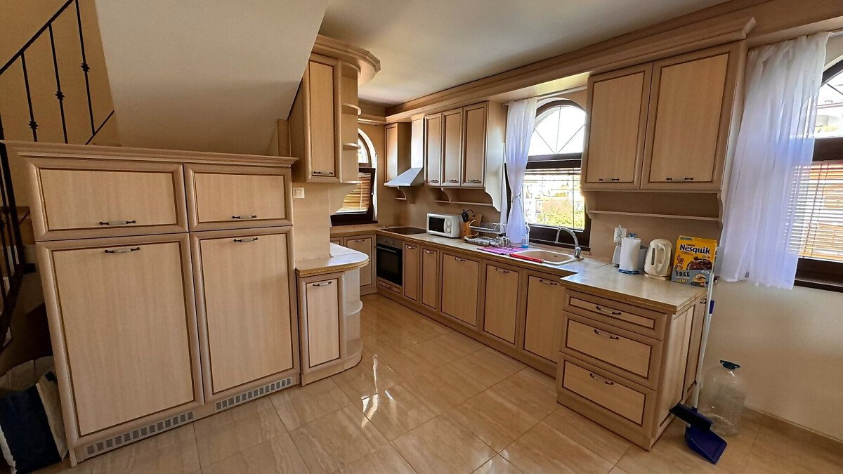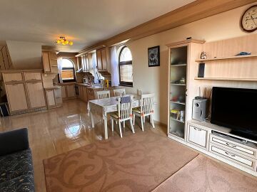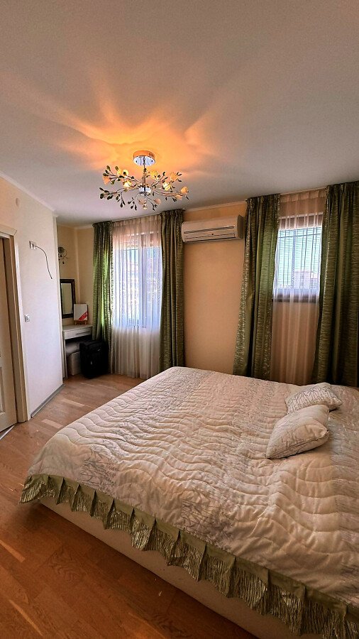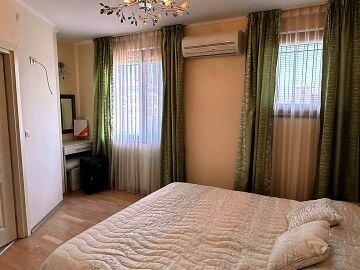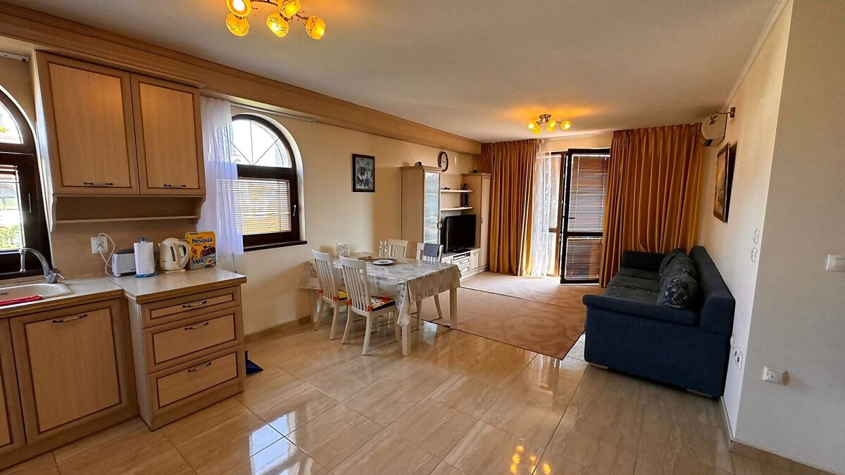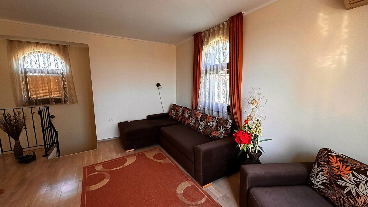 Имотът е напълно обзаведен с качествени мебели, оборудван с необходимата домакинска електротехника, със следното разпределение:
