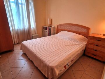 Предлагаме за продажба прекрасен тристаен апартамент, разположен на трети етаж от вила във ваканционния комплекс "Санта Марина" в Созопол, който е единствен по рода си в България. На територията му са разположени 5 плувни басейна, 4 детски басейна, 3 топли джакузита на открито, слънчеви тераси, рецепция, 4 тематични ресторанта, детски кът и анимационна програма на три езика, 2 супермаркетa, 3 пул бара, кафе-сладкарница, различни магазини, 2 уелнес центърa и фризьорски салон, медицински център, тенис център с 8 тенис корта, игрище за футбол, перално и химическо чистене, вътрешен транспорт с електрически автобуси, автобус от/до Созопол, Смокиня и Каваци, охрана, видеонабюдение и др.