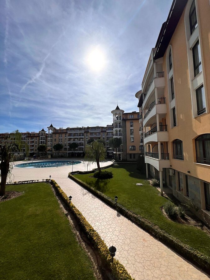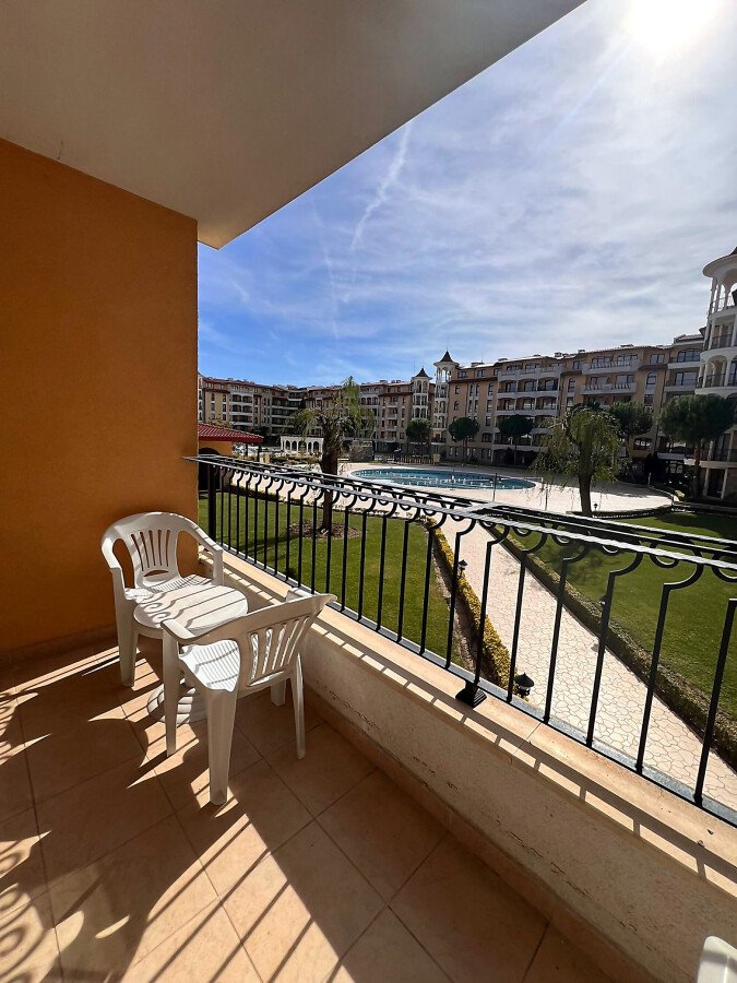 Предлагаме за продажба светъл тристаен апартамент с гледка към басейна в прекрасния комплекс „Роял Сън“, разположен в курорта Слънчев бряг, в район с удобни комуникации и развита инфраструктура, само на 500 метра разстояние от морето и плажната ивица.