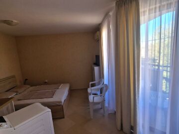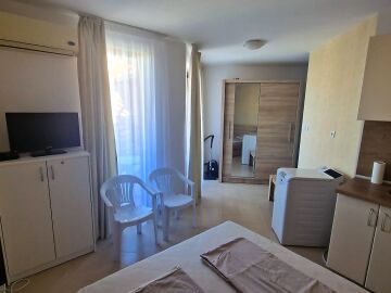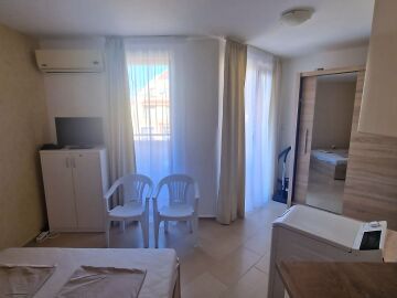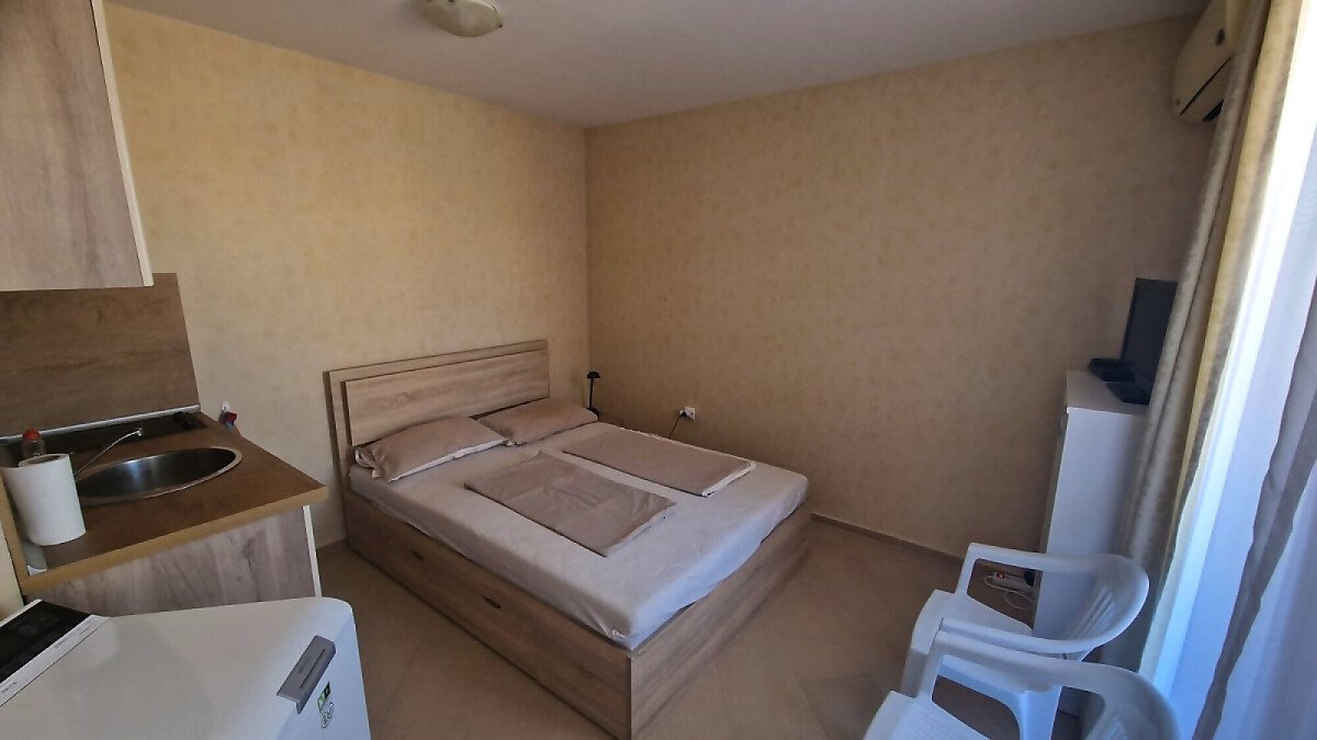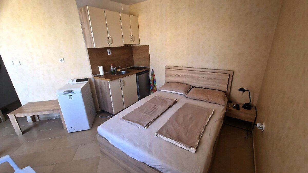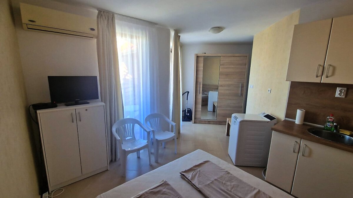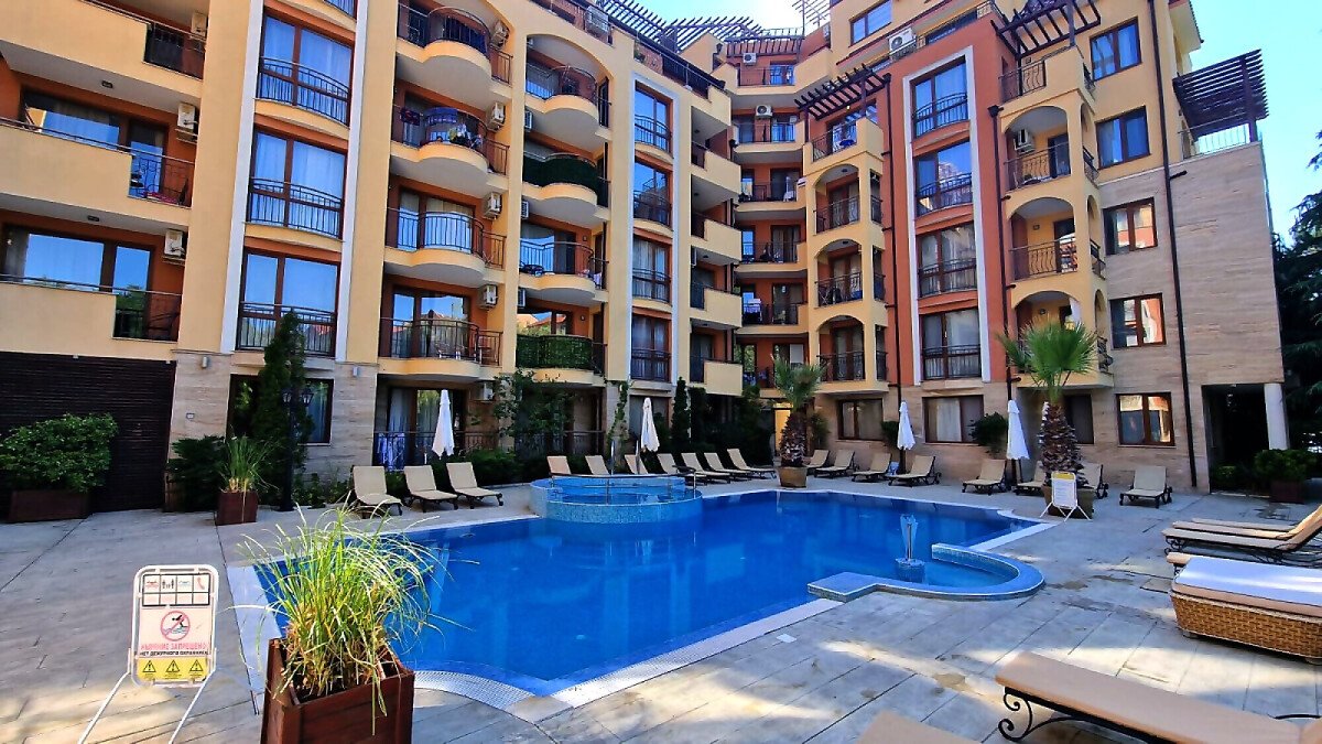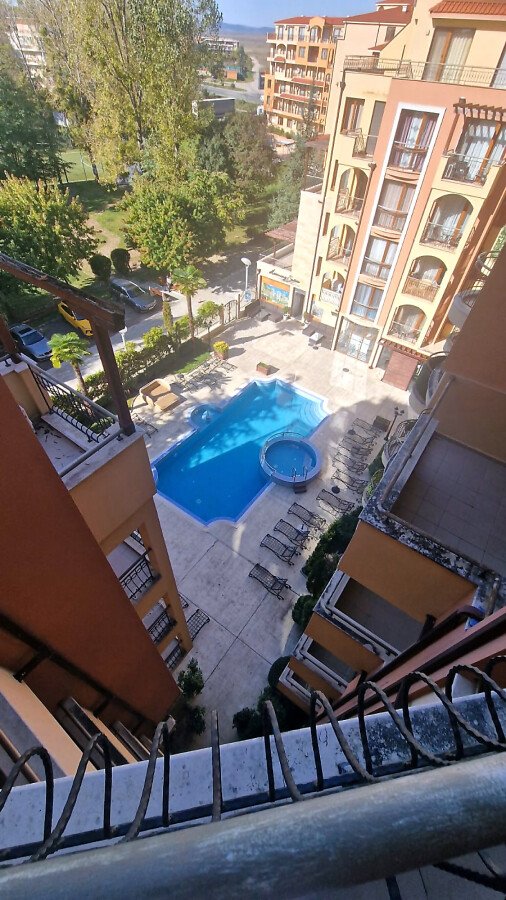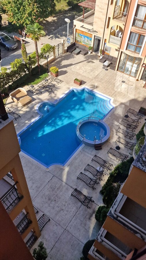Предлагаме за продажба светло студио с гледка към басейна в невероятния жилищен комплекс “Harmony Suites 1“, разположен в северната част на морския популярен курорт Слънчев бряг, на 700 метра разстояние от пясъчната плажната ивица.