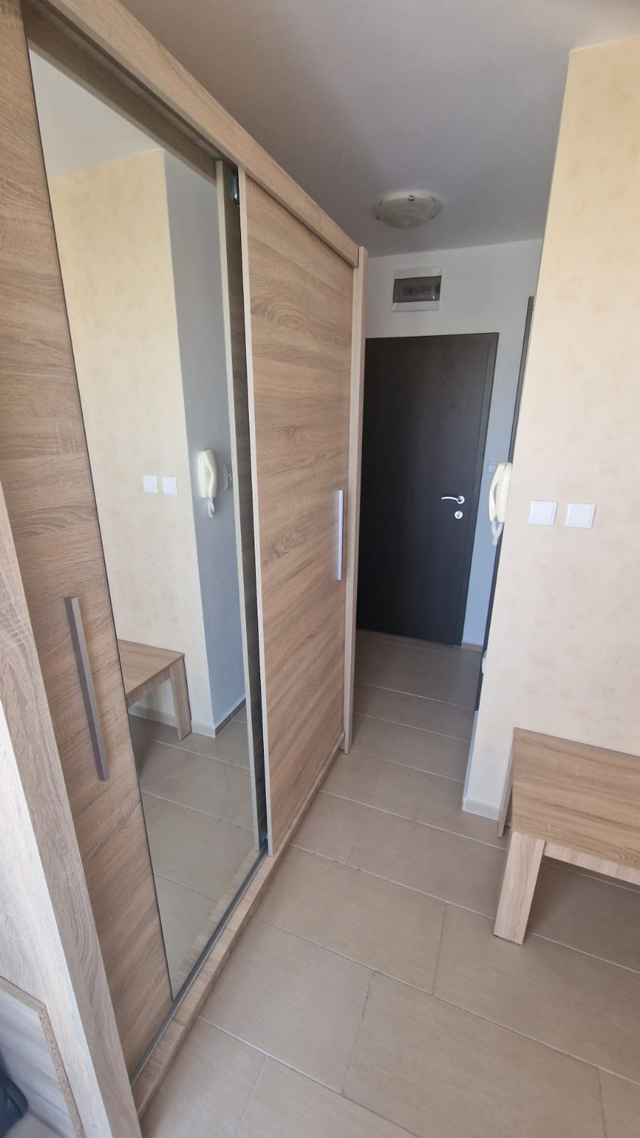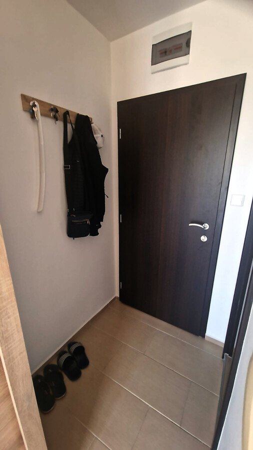 Студиото е разположено на шести, предпоследен етаж и се състои от входно антре, всекидневна с напълно оборудван кухненски бокс и голяма спалня, баня с тоалетна и душ кабина, балкон с красива гледка към басейна и озеленената вътрешна територия на комплекса.