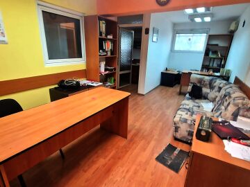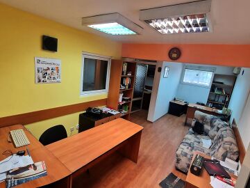 Състои се от 5 преходни помещения и санитарен възел. Разполага с чиста площ от 87,10 кв.м. и общи части - 11,94 кв.м., както и 5,161% идеални части от дворното място.