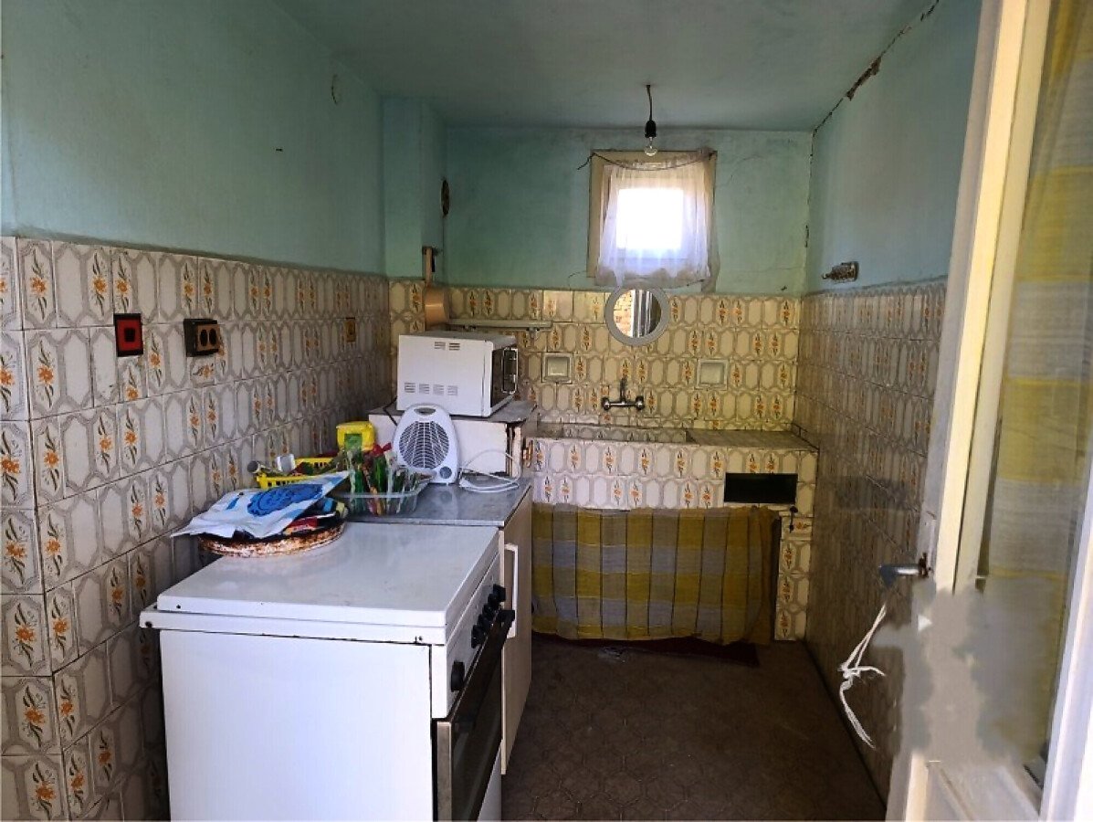 Първи етаж - вкопан под ниво улица се състои от маза и две стаи. Външно стълбище води към втория етаж, състоящ се от дневна, две спални и коридор. До къщата от запад е долепена лятна кухня и една спалня, баня и отделно тоалетна, навес и стопанска постройка. Имотът разполага с гараж с площ 22 кв.м., в двора има и кладенец.