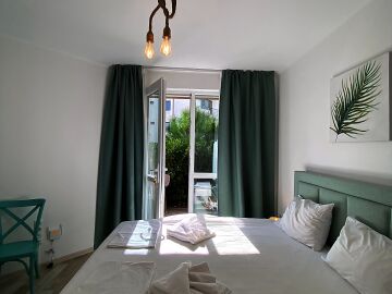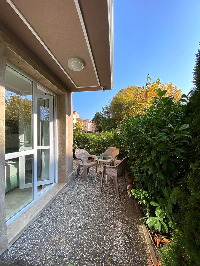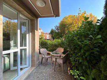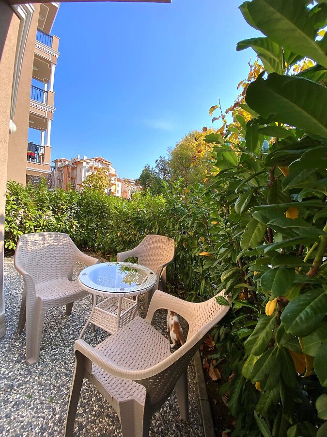 Предлагаме за продажба стилно обзаведено студио със самостоятелен двор в бутиковия комплекс “Изида Палас 2” в Слънчев Бряг.