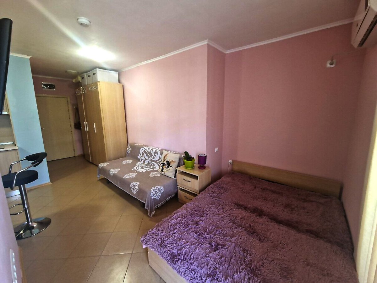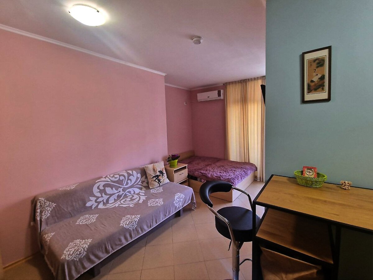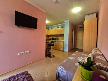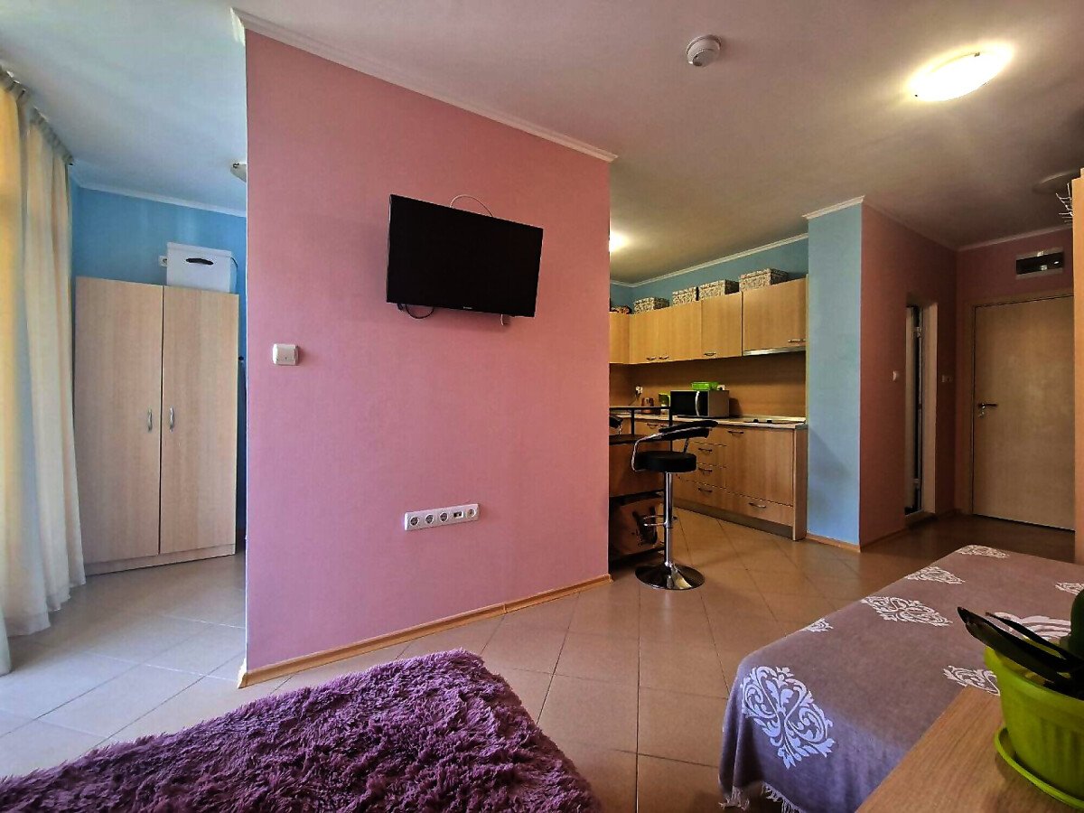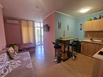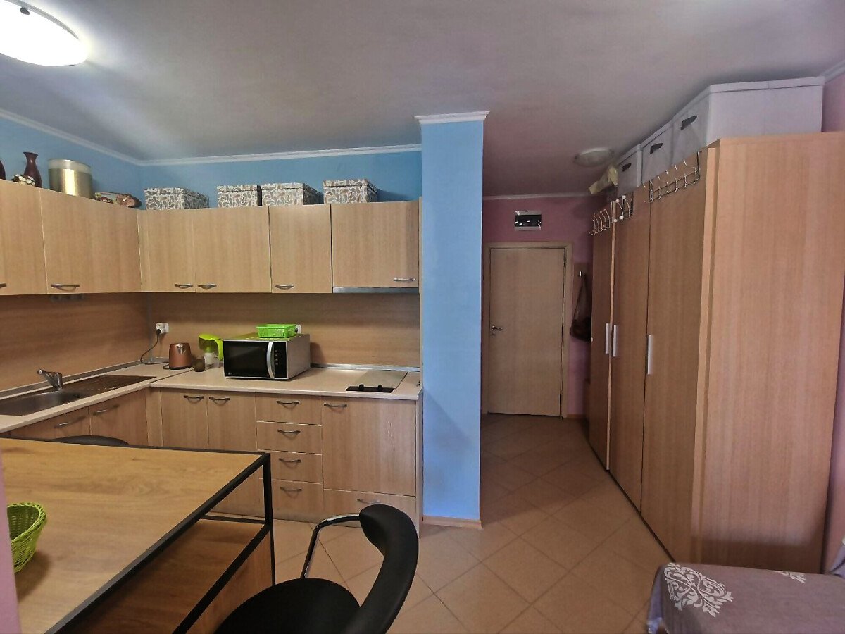 Студиото се продава в отлично състояние, напълно оборудвано и обзаведено с всичко необходимо, със следното разпределение – входно антре, всекидневна с кухненски бокс и обособена спалня, баня с тоалетна, голям балкон.